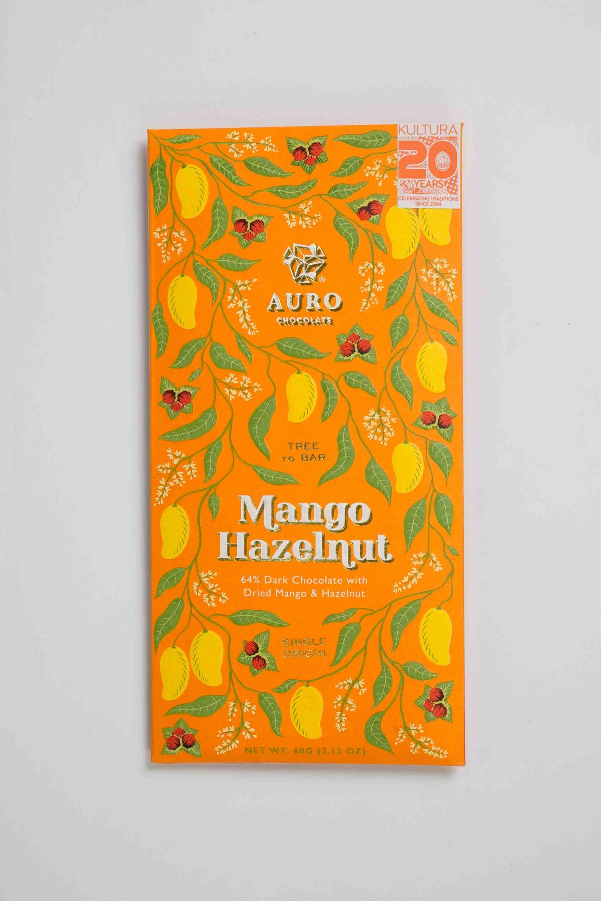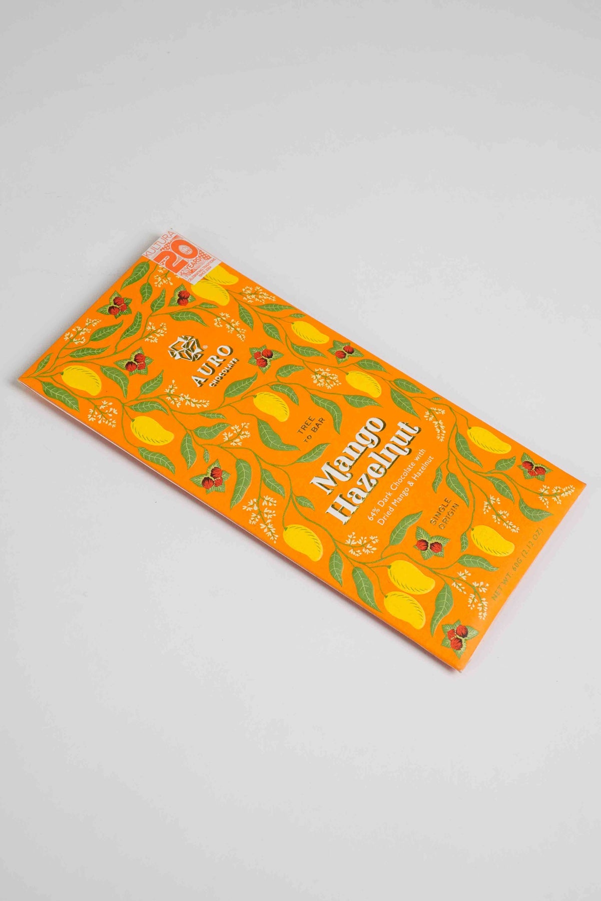 Auro Kultura Exclusive 64% Dark Chocolate with Dried Mango and Hazelnut 60g