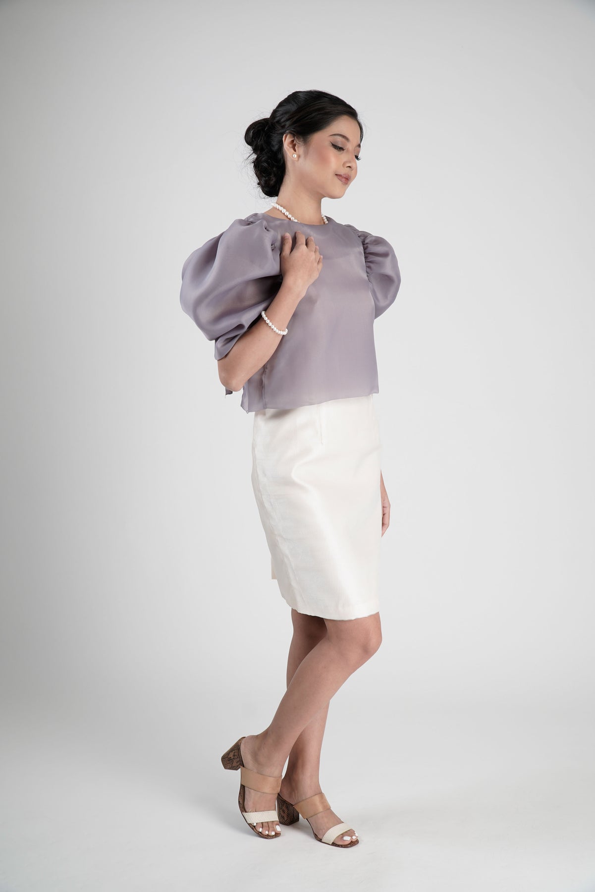 I wore the ivory colored shanthng dress during my wedding day! It was form fitting and had a nice hug at the waist area. Dress is not heavy, and I had comfort wearing it the whole day. Gown was long, as I stand 5'1", I wore a 3in heels and the hem falls slightly touching the floor.