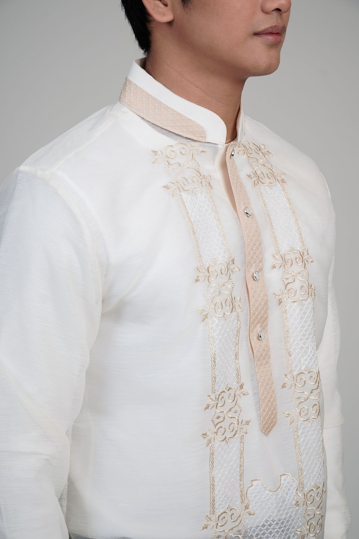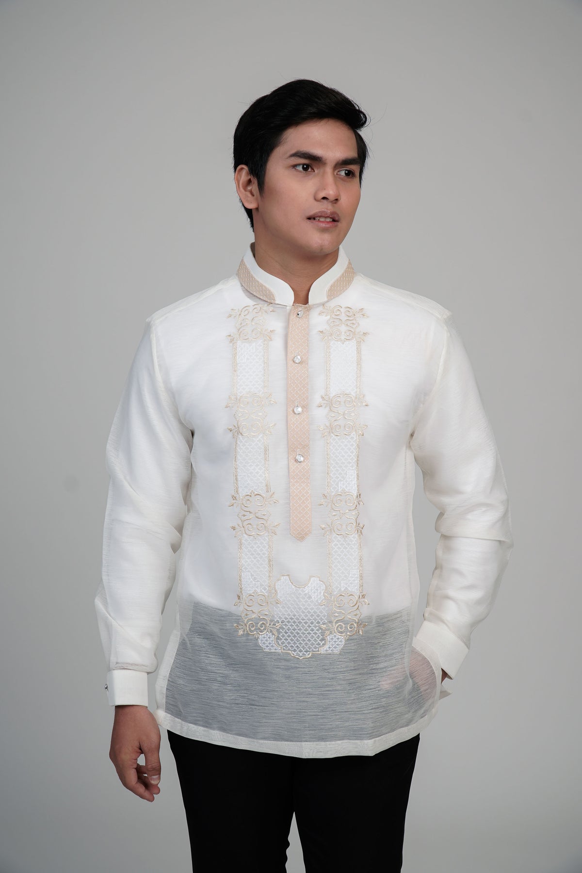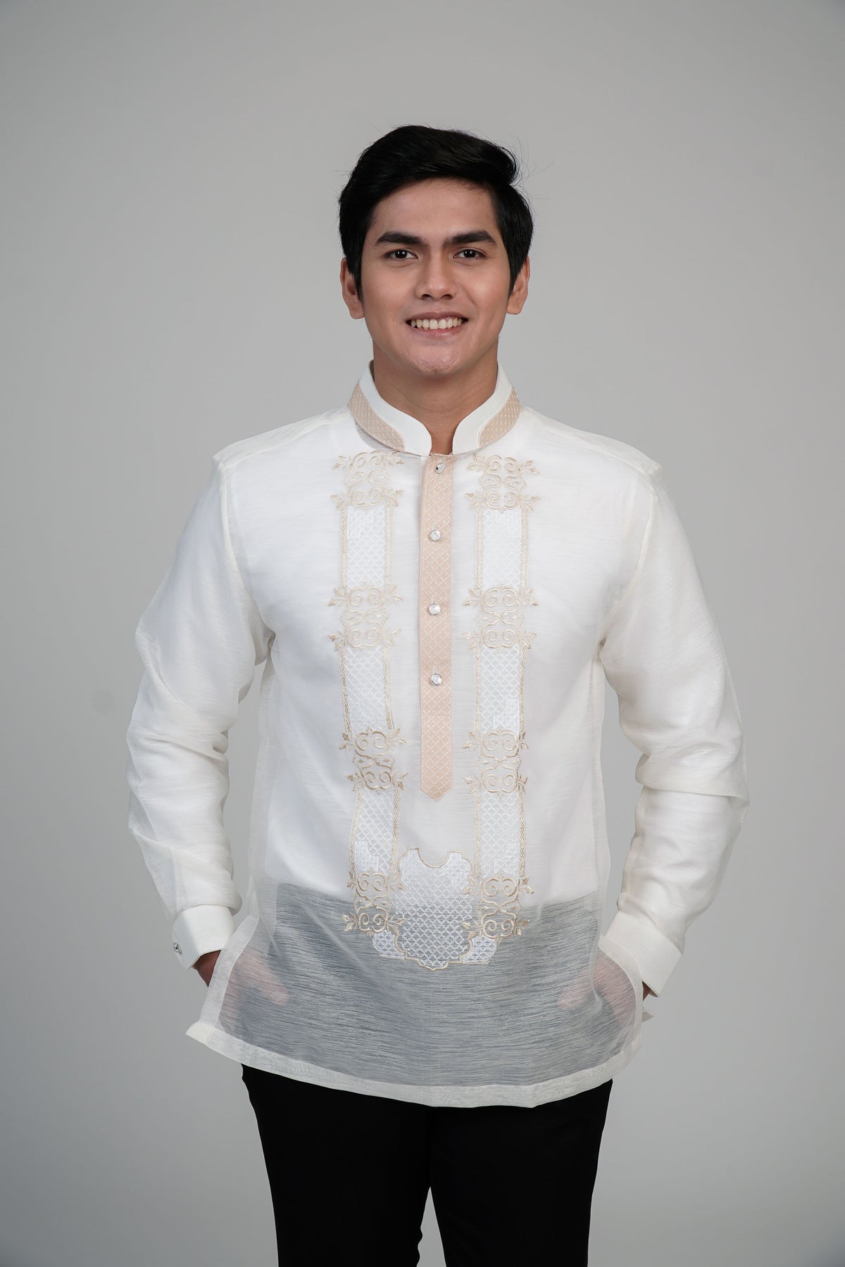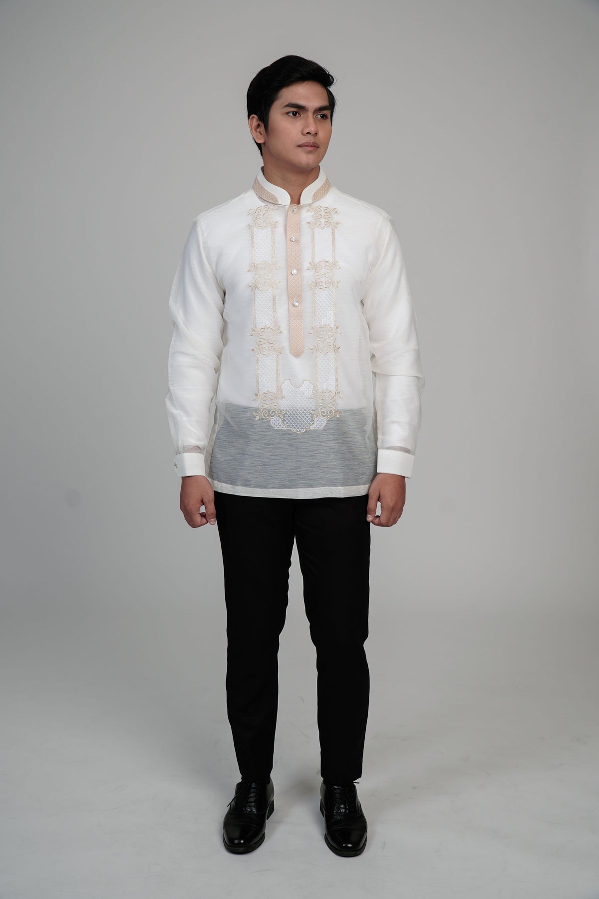 Men's Jusilin Long Sleeves Barong in Natural with Black Embroidery