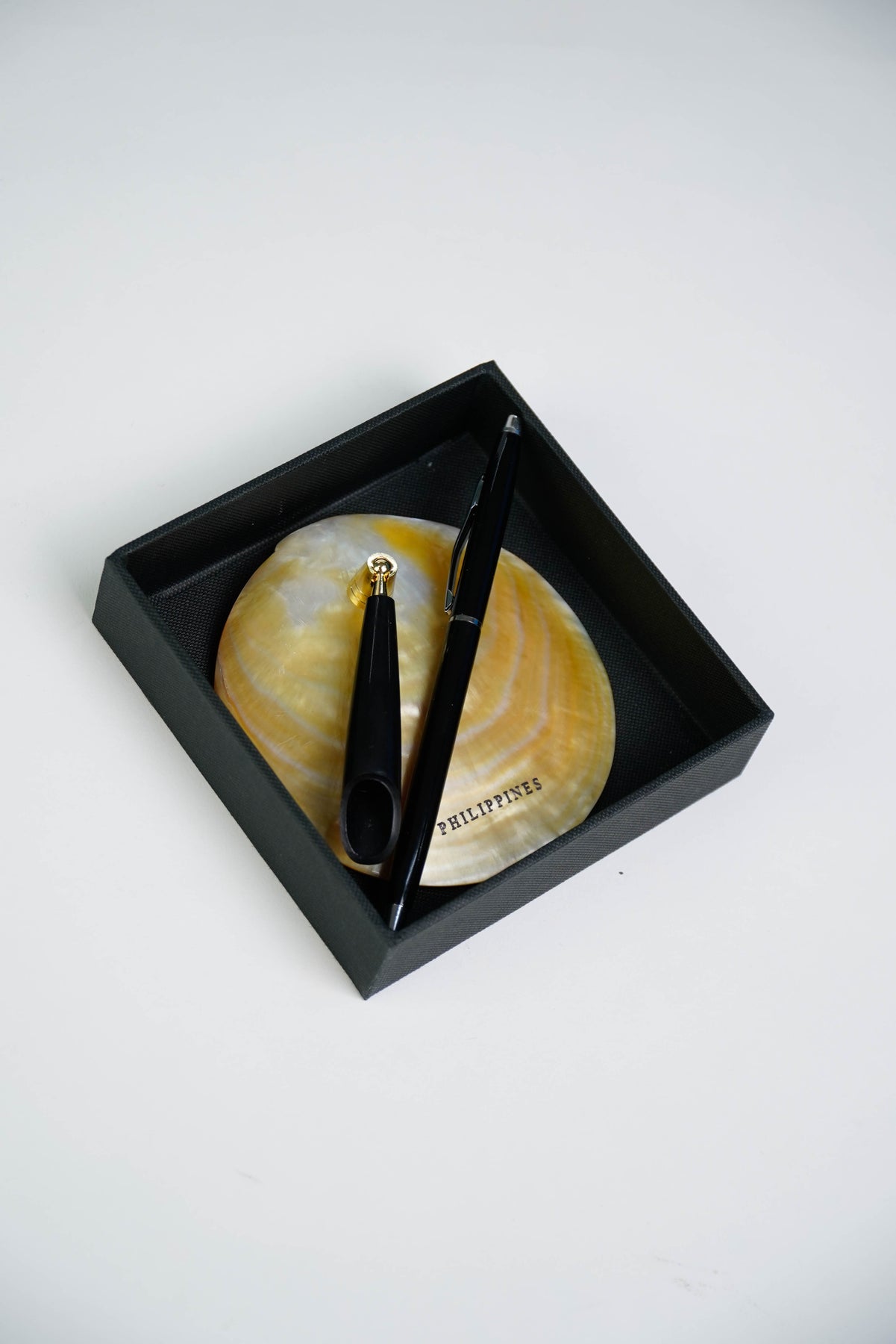Mother of Pearl Deep Shell Trinket Dish With Plated Leaf