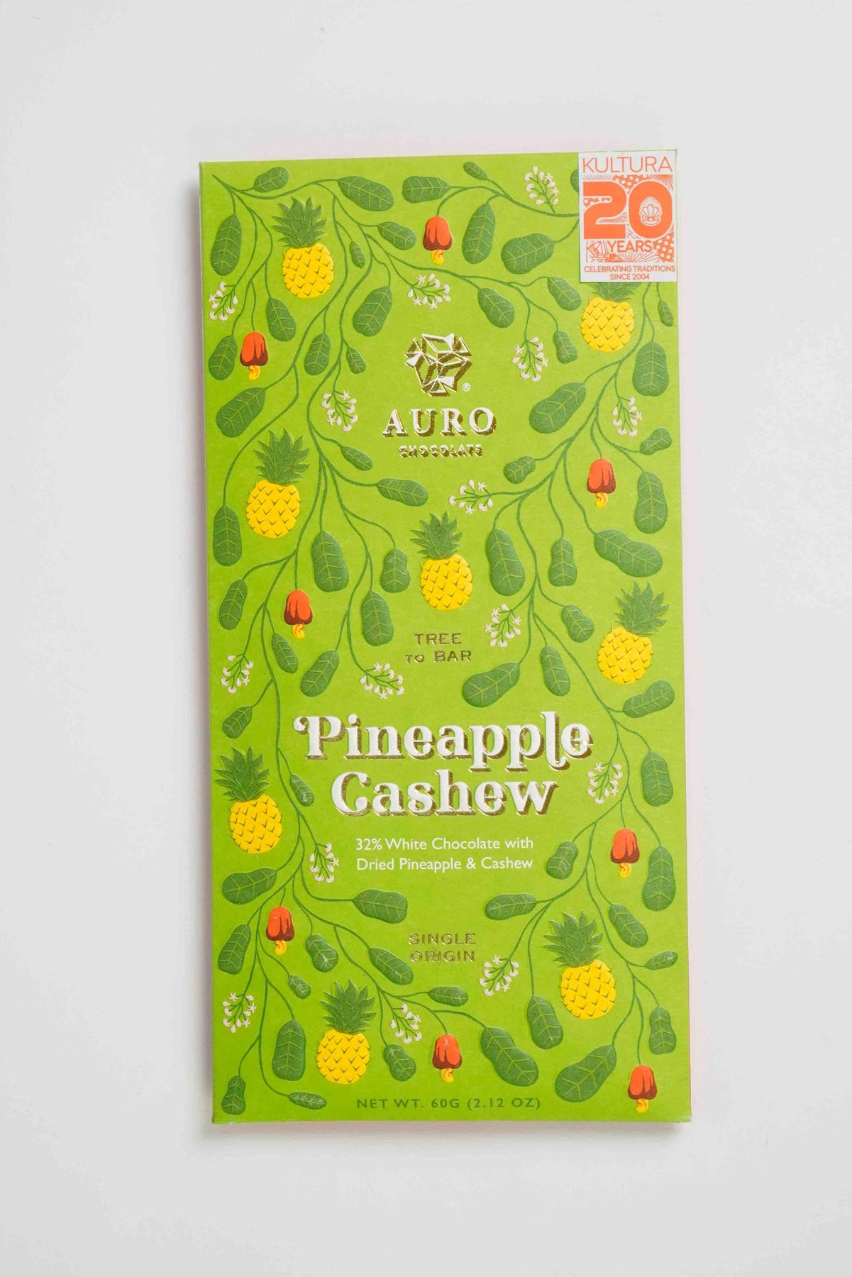 Auro Kultura Exclusive 32% White Chocolate with Dried Pineapple & Cashew 60g