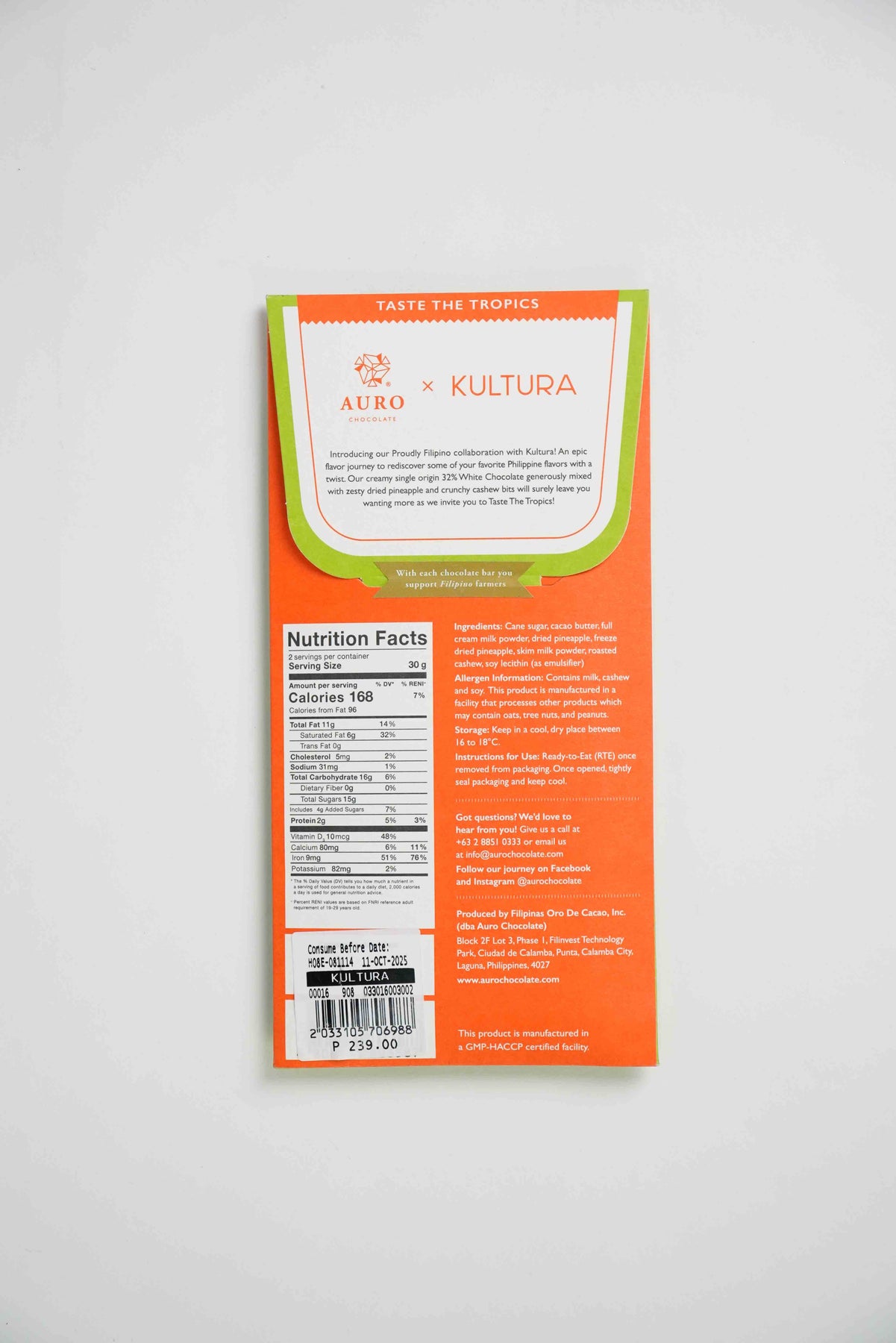 Savor the exquisite Kultura-Exclusive Auro Milk Chocolates, crafted to celebrate Kultura’s 20th anniversary. Each 20g bar brings the classic tastes of Filipino favorites to satisfy your sweet cravings with a touch of luxury.