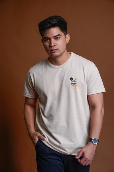 Men's Graphic Tee Just Keep Going Turtles Embroidered in Beige