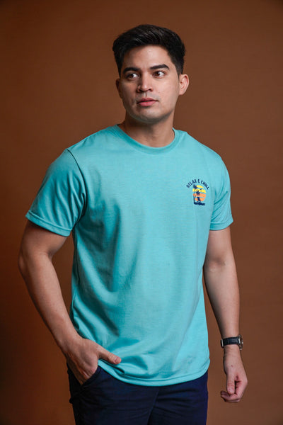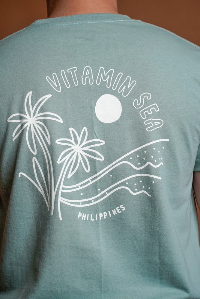 Boy's Graphic Tee Sun and Sea Embroidered in Green