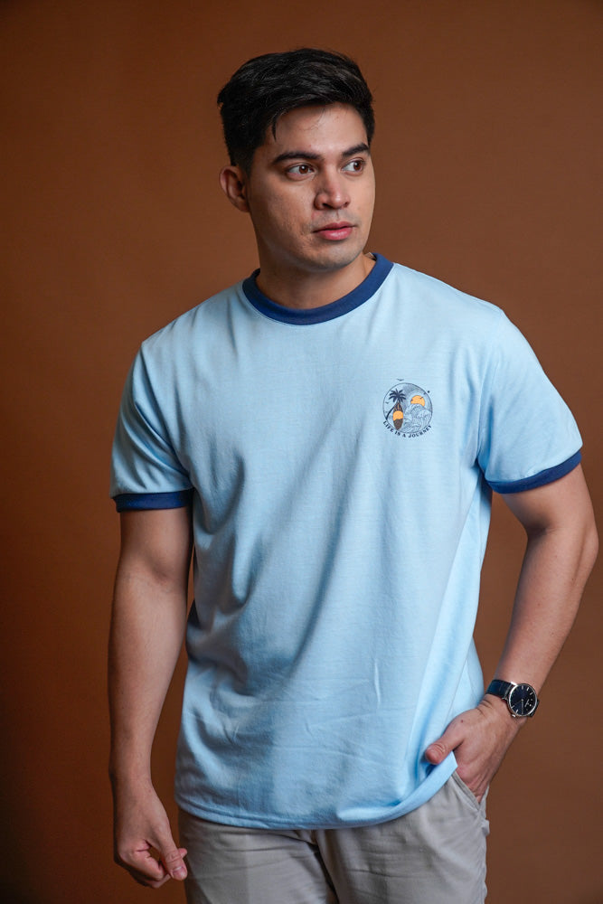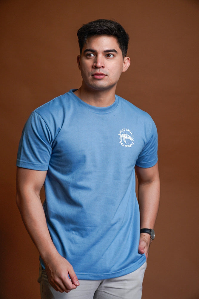 Men's Boxy Tee with Checkered Travel PH Print in Navy Blue