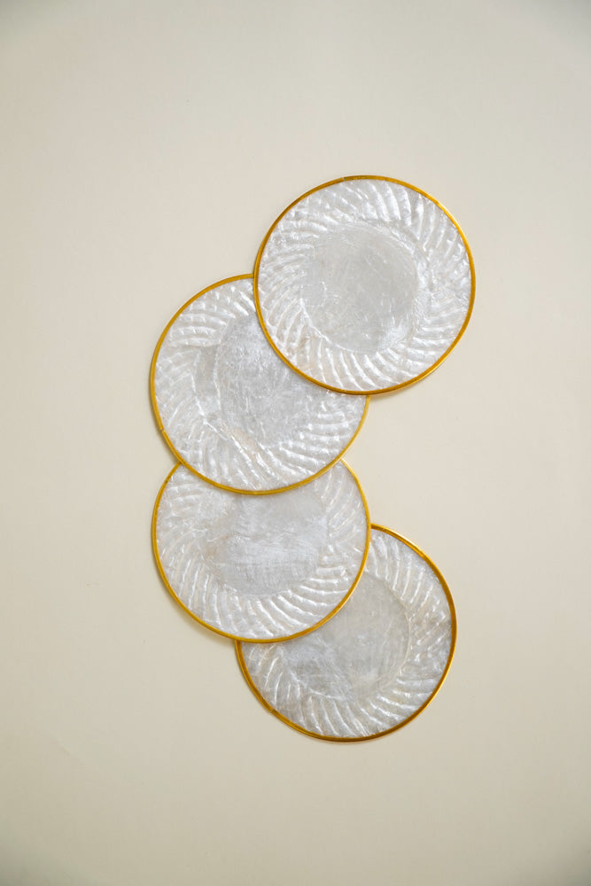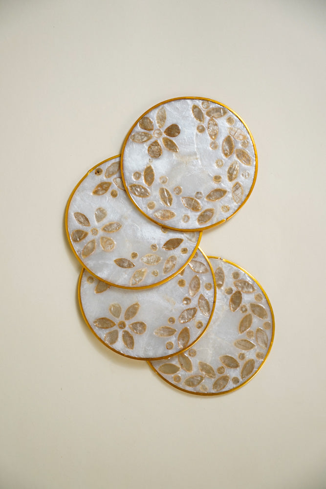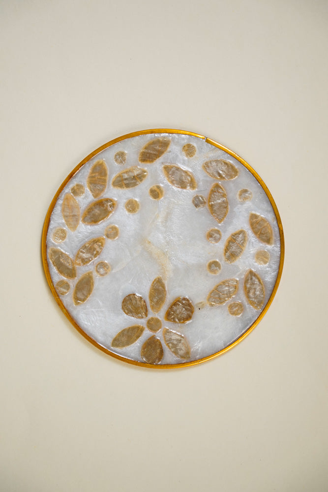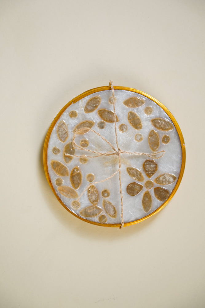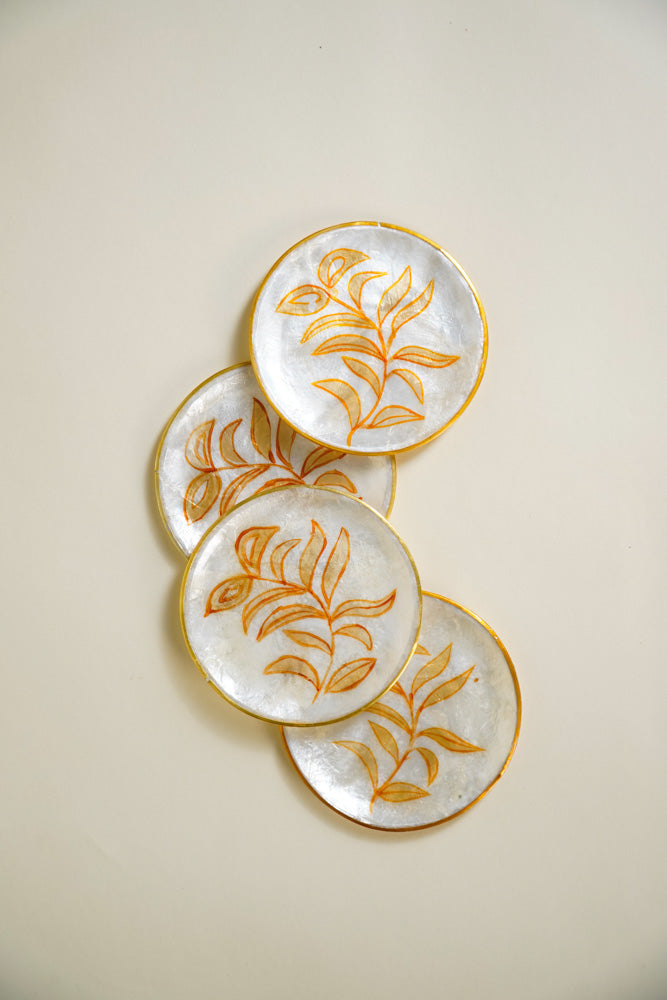 Round Capiz Coaster Gold Leaf Design Set of 4