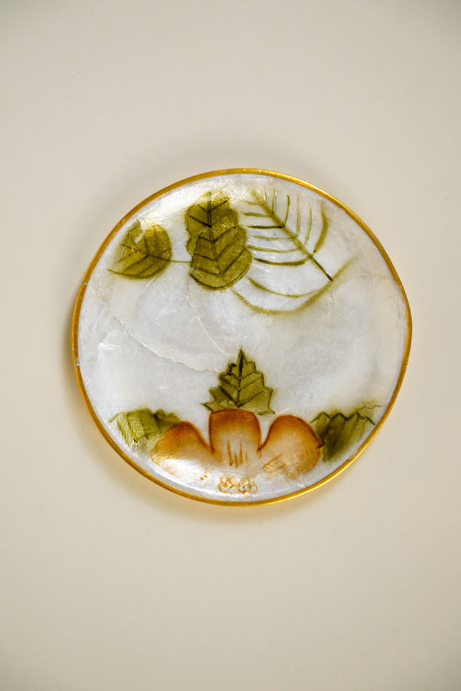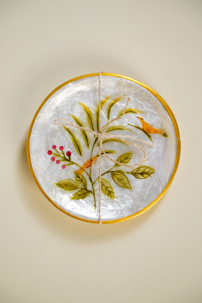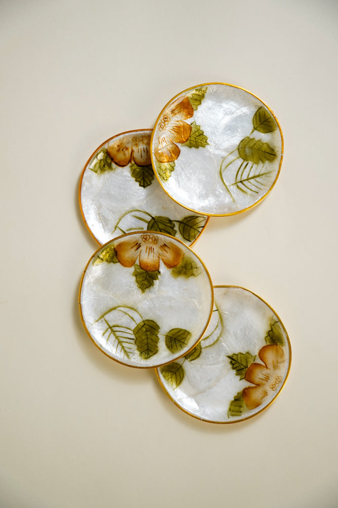 Round Capiz Coaster Floral Design Set of 4