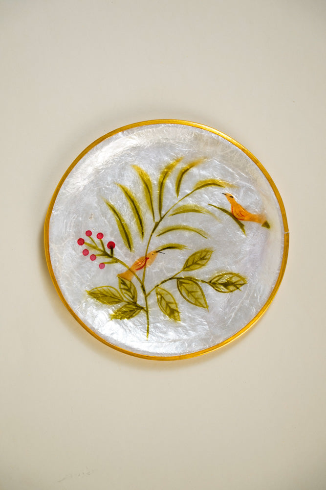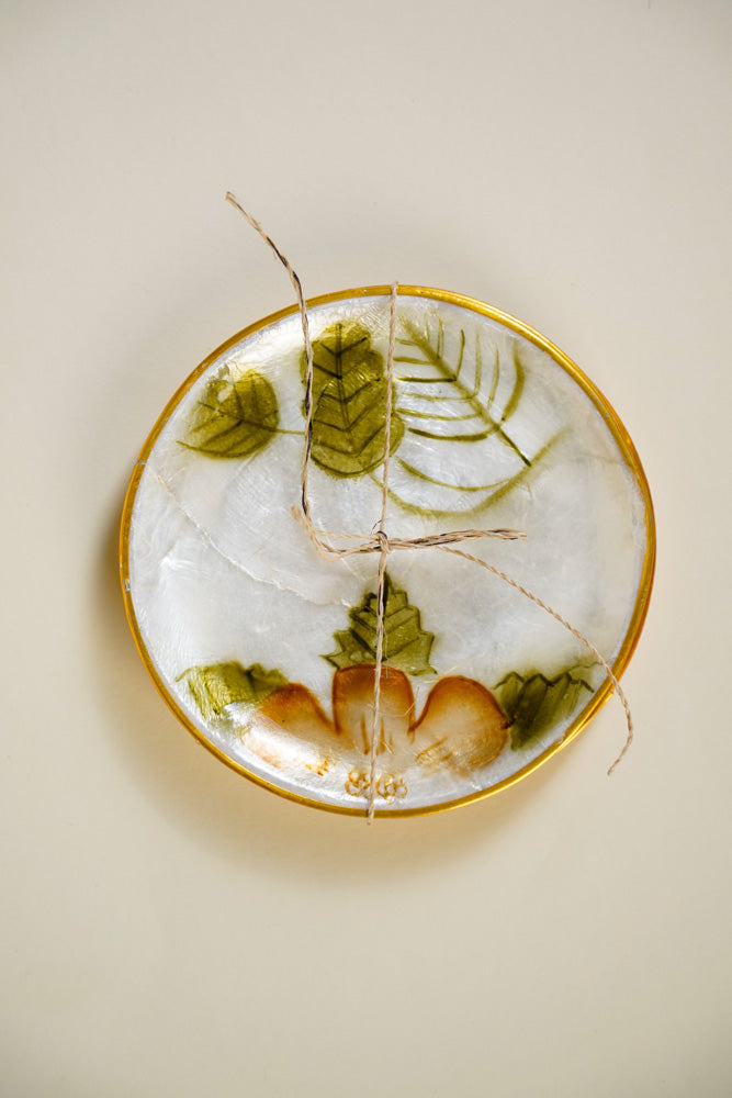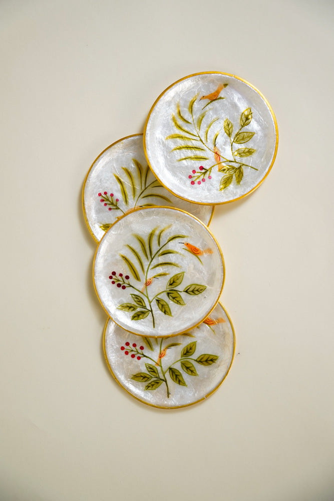 Round Capiz Coaster Tropical Leaves Design Set of 4