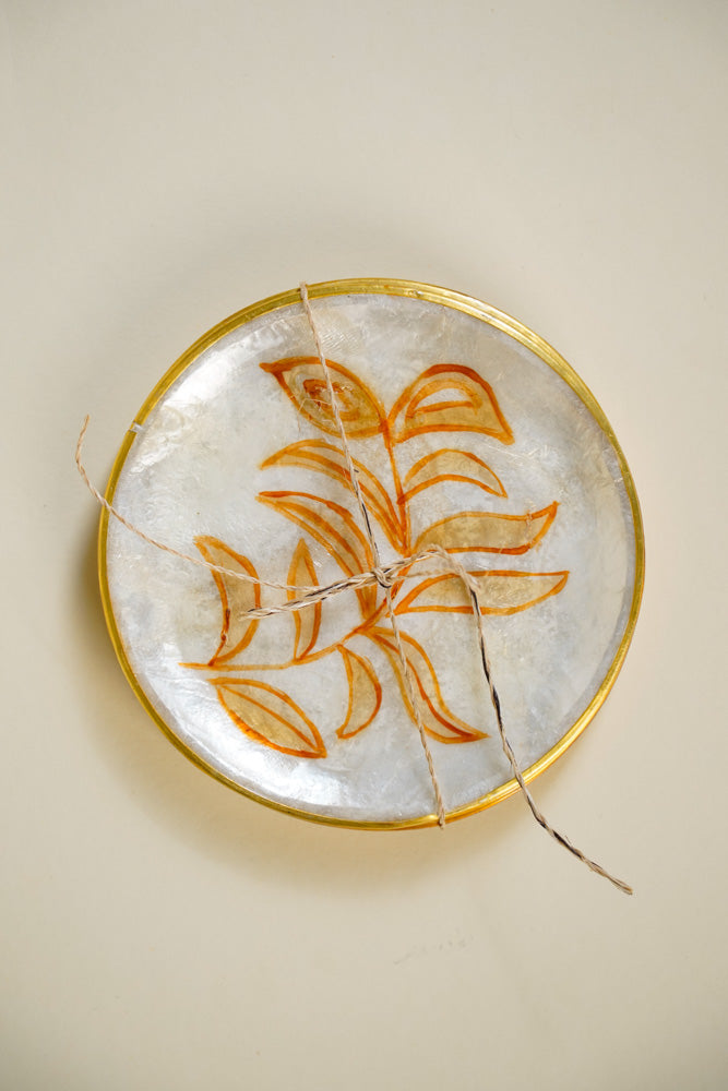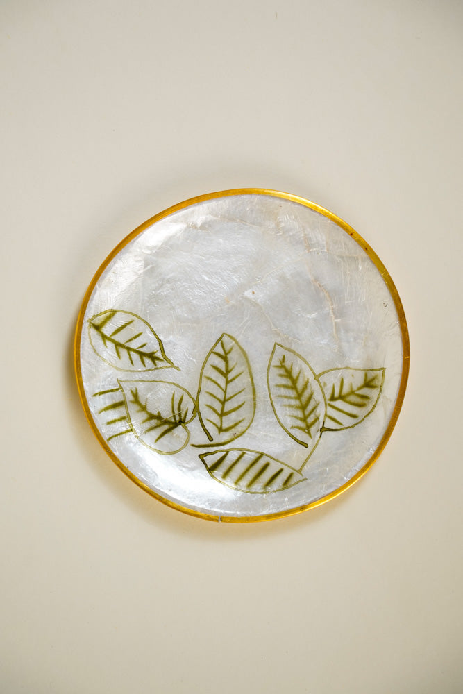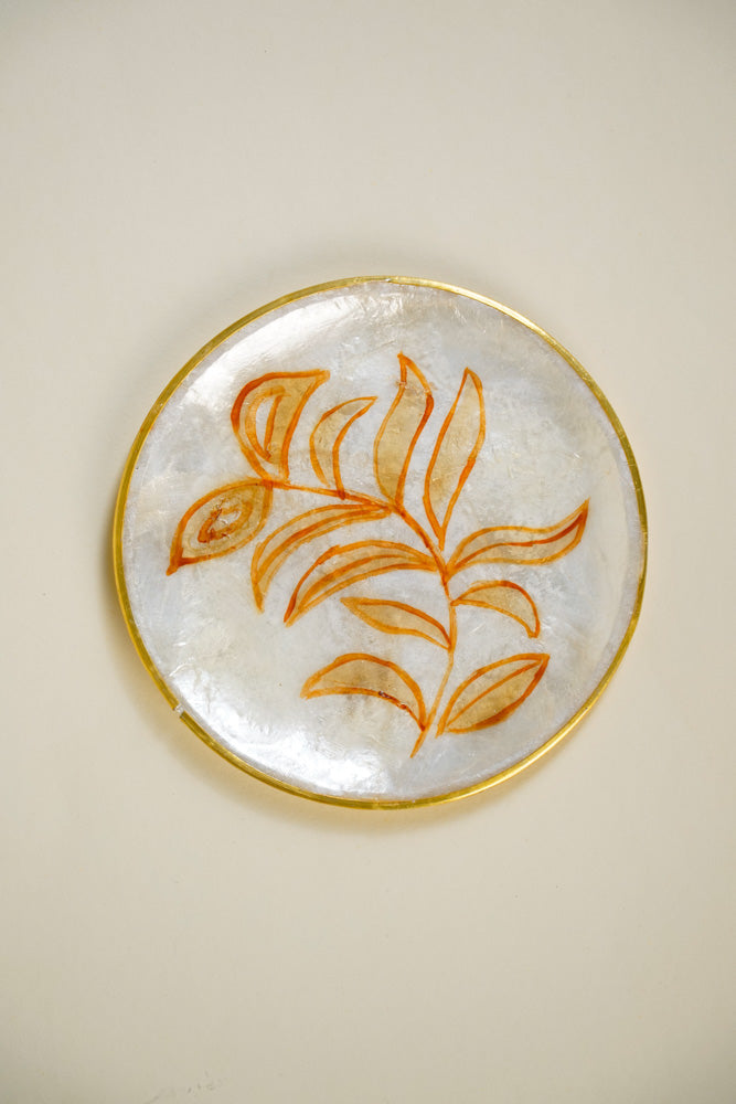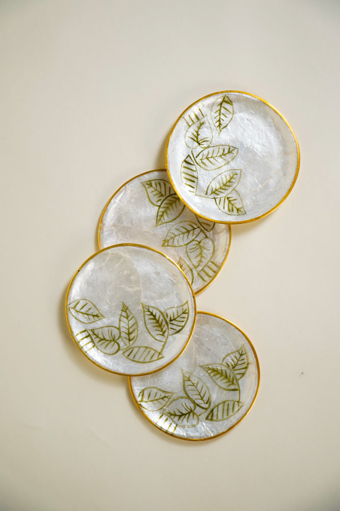 Round Capiz Coaster Skeleton Leaves Set of 4