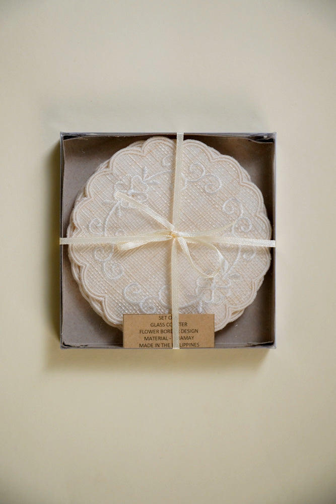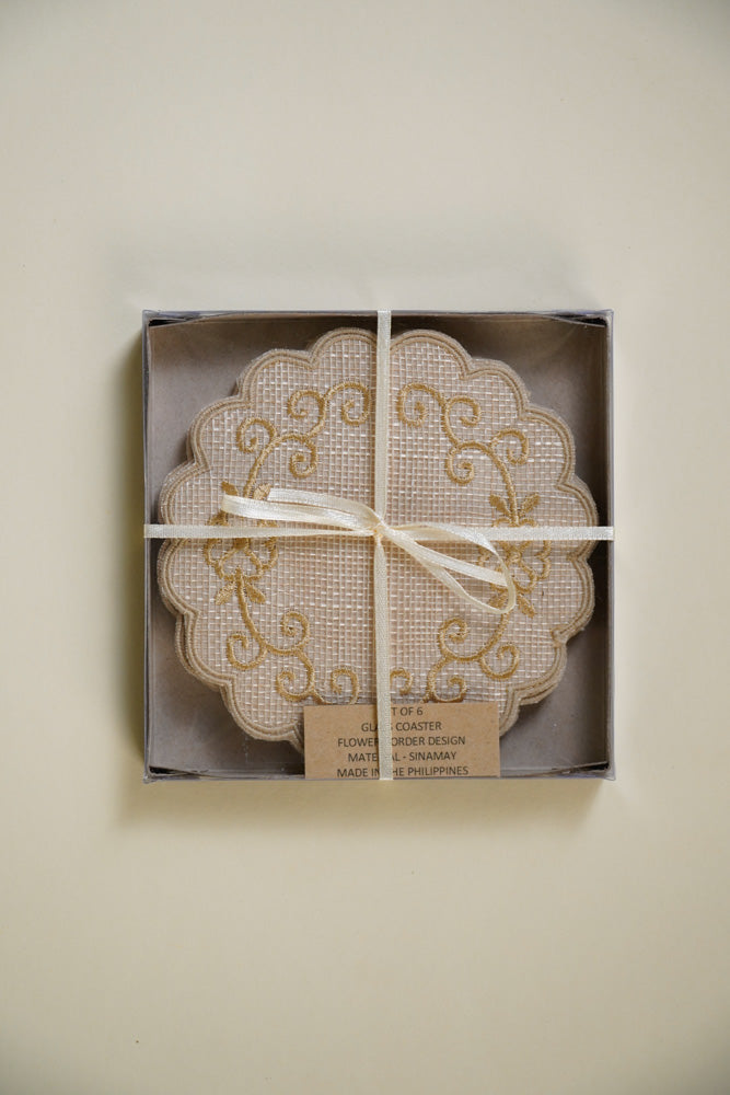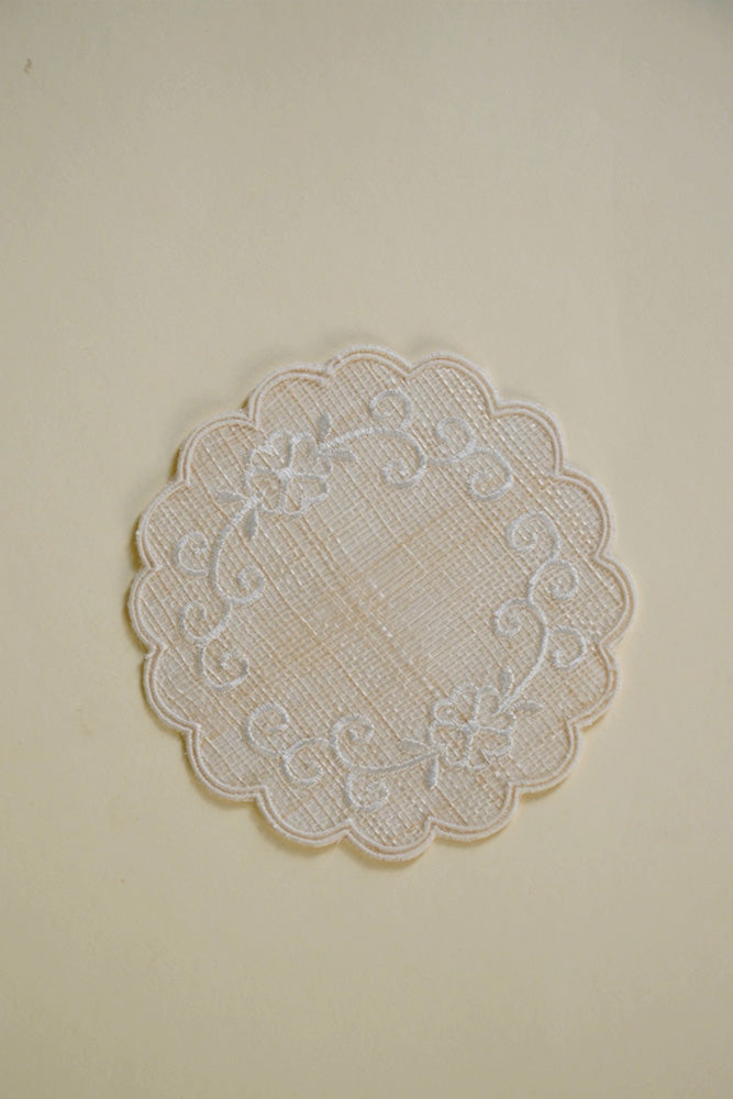 Round Coaster Sinamay Flower Border Offwhite Set of 6