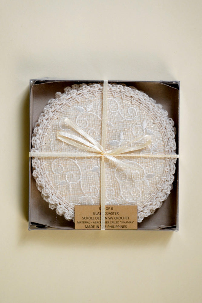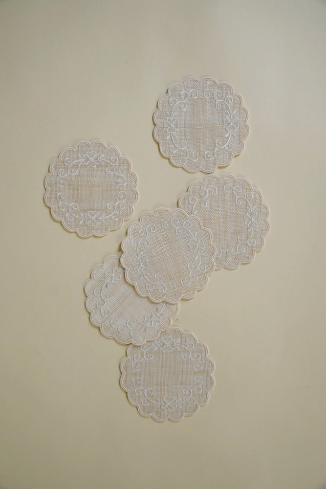 Round Coaster Scroll Offwhite Set of 6