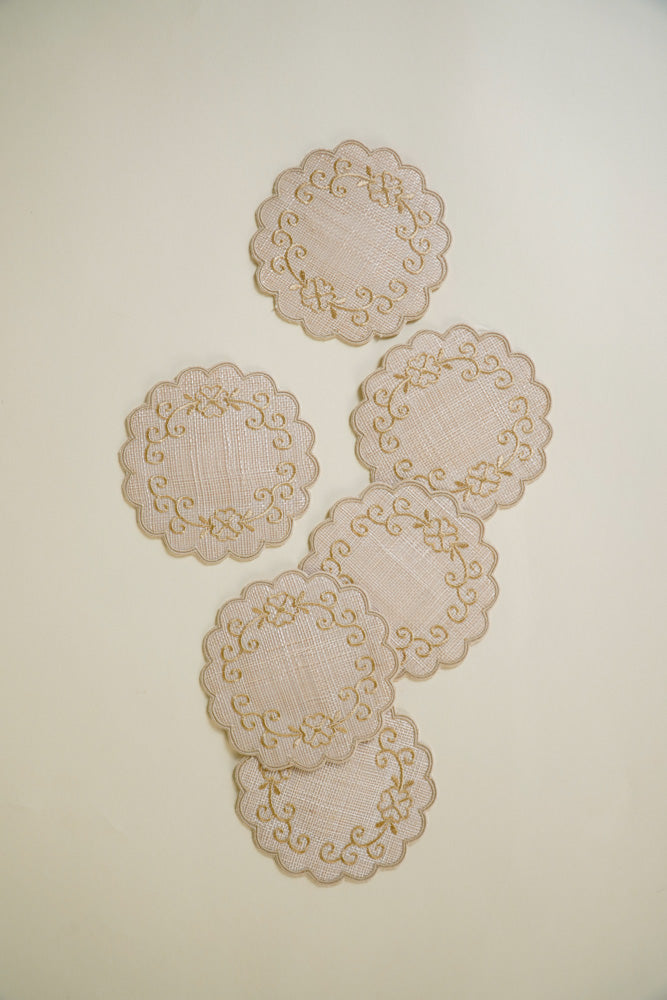 Round Coaster Sinamay Flower Border Beige Set of 6