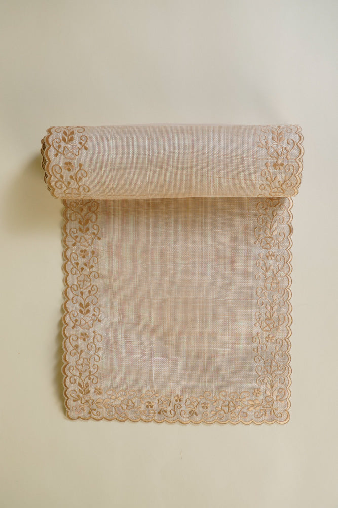 Small Table Runner with Flower Lining Beige