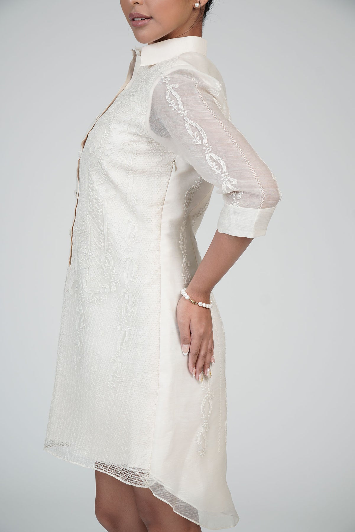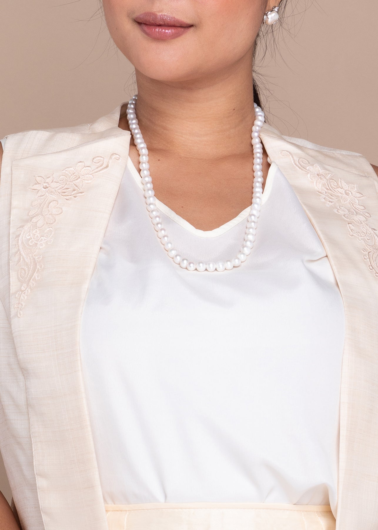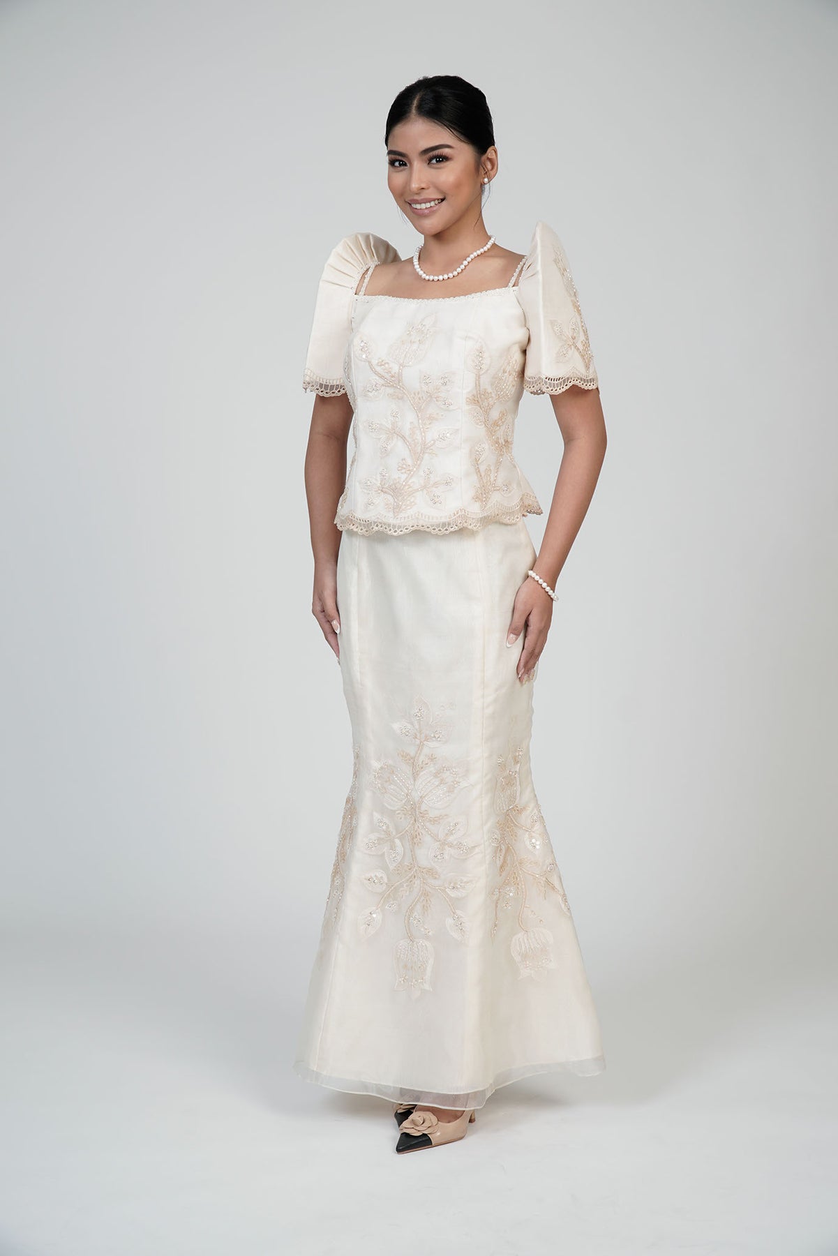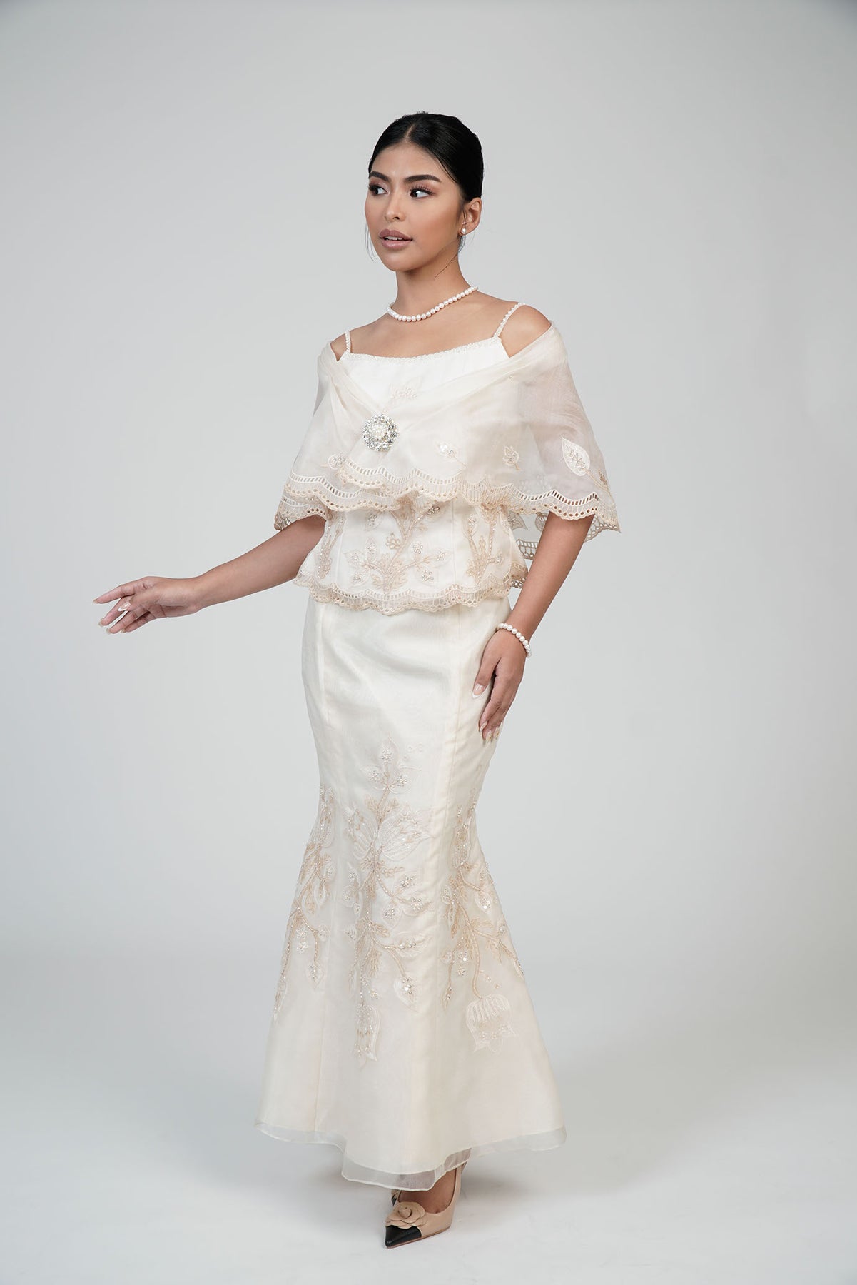 Women's Filipiniana Dress with Detachable Sleeves in Beige