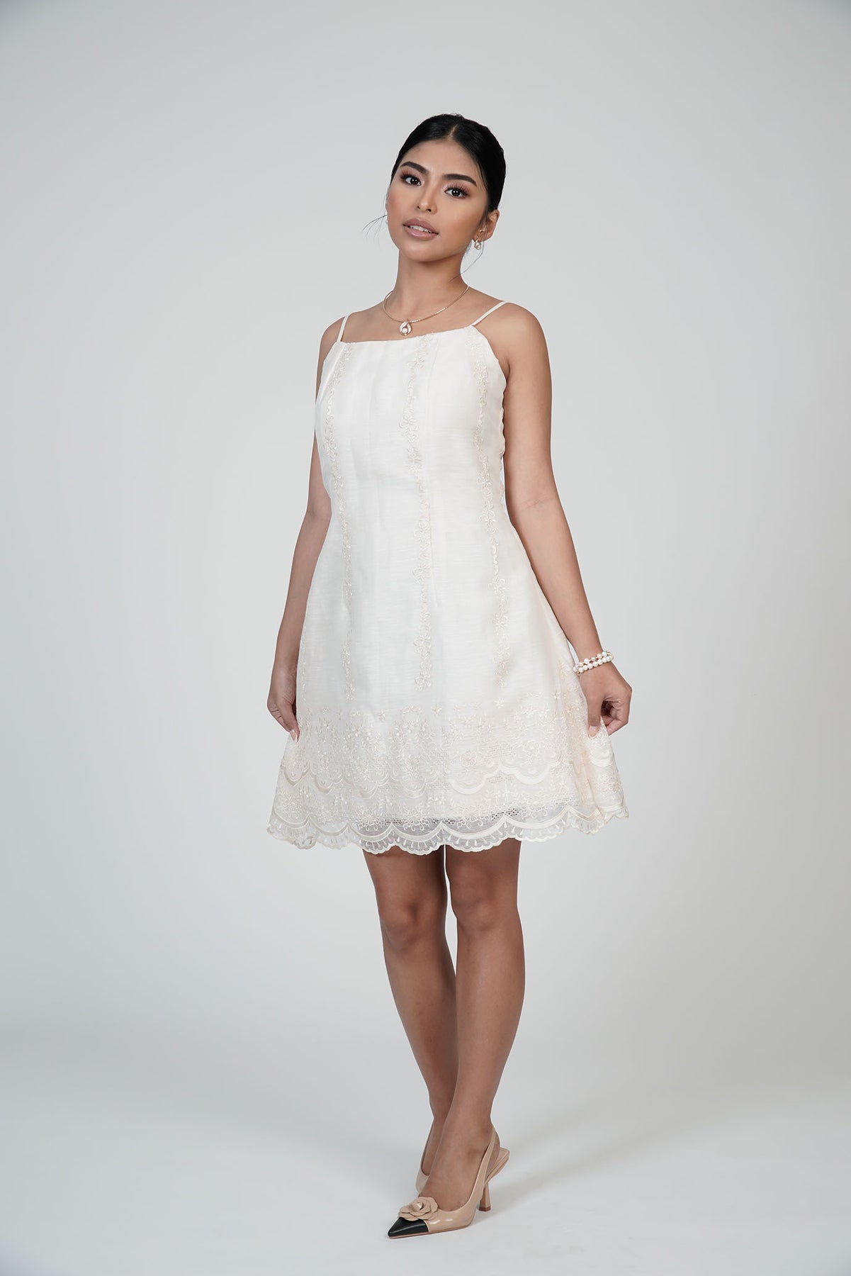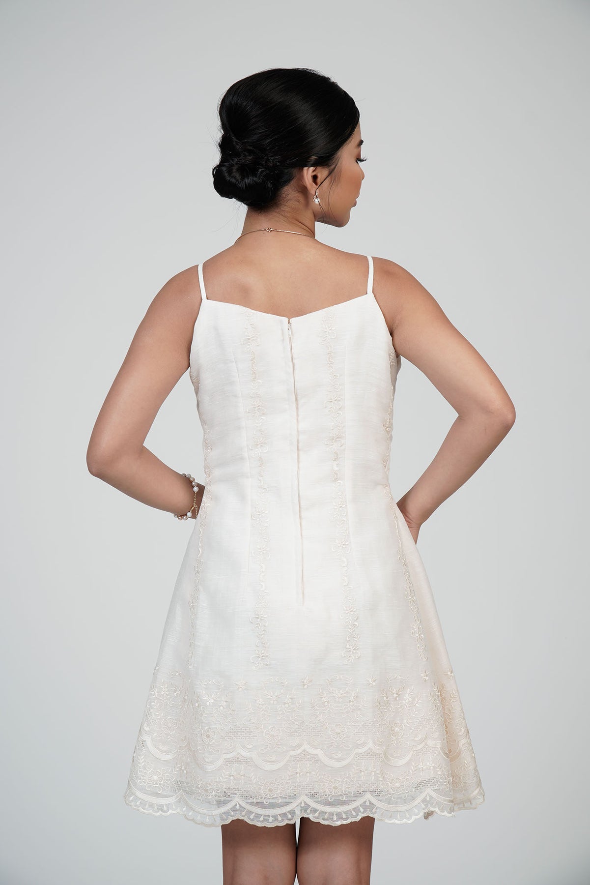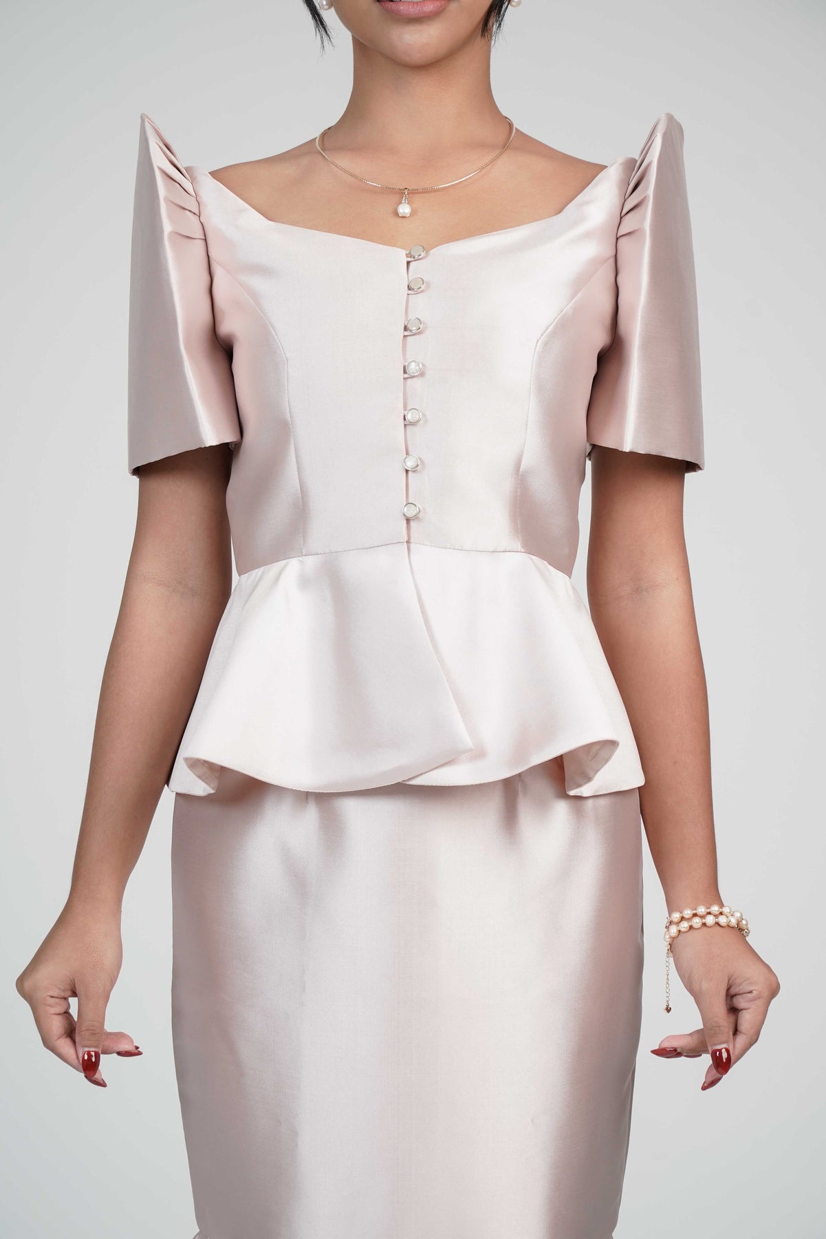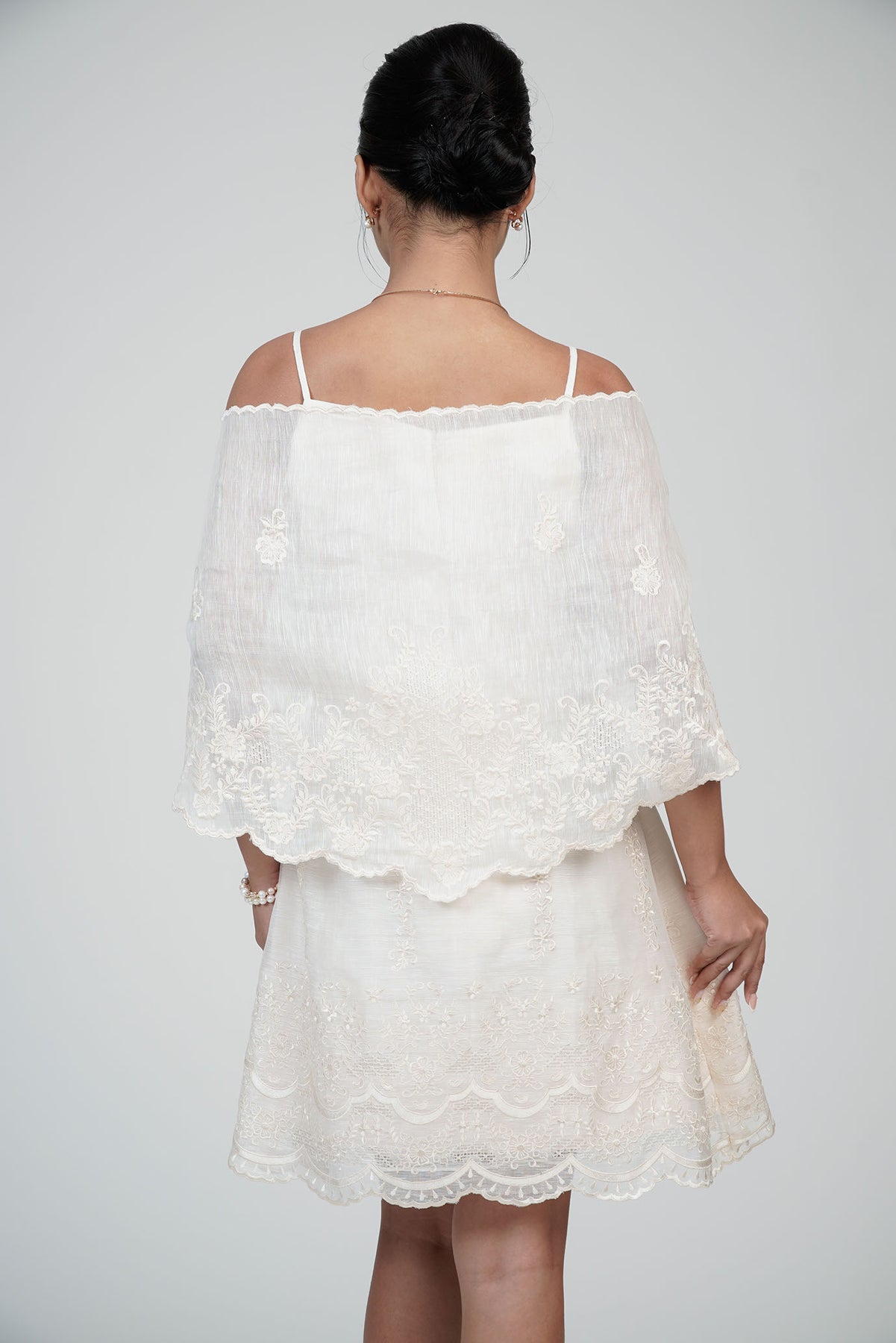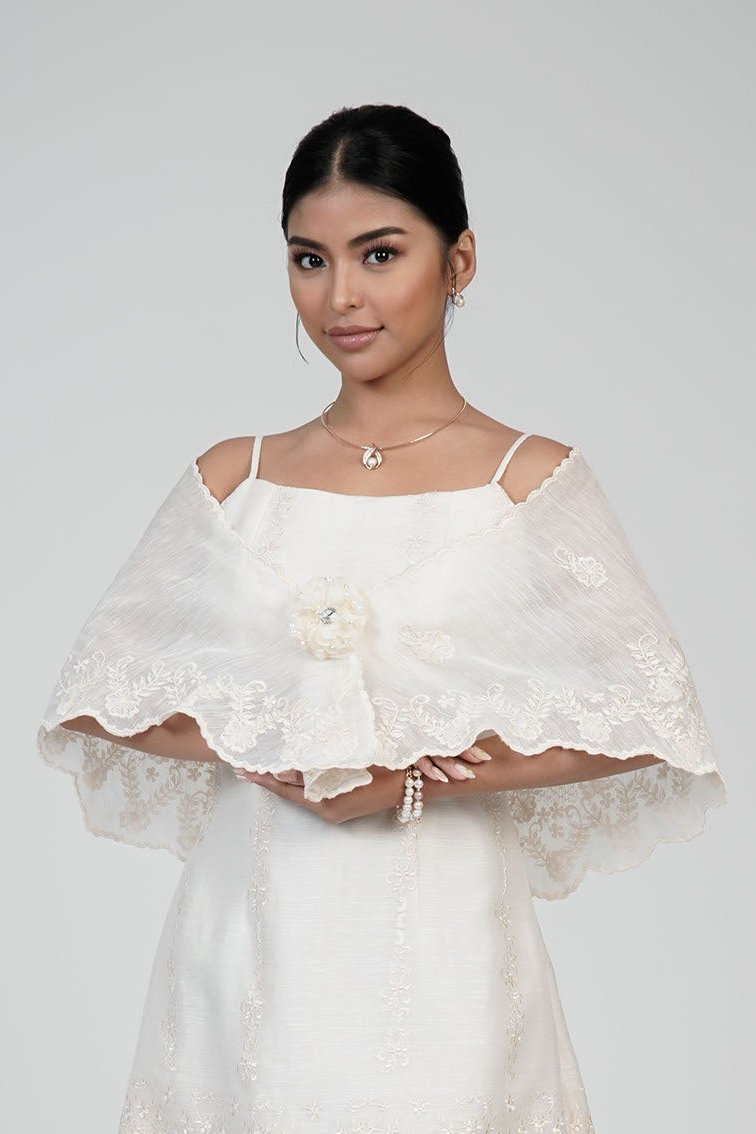 Women's Filipiniana Dress with Detachable Sleeves in Beige