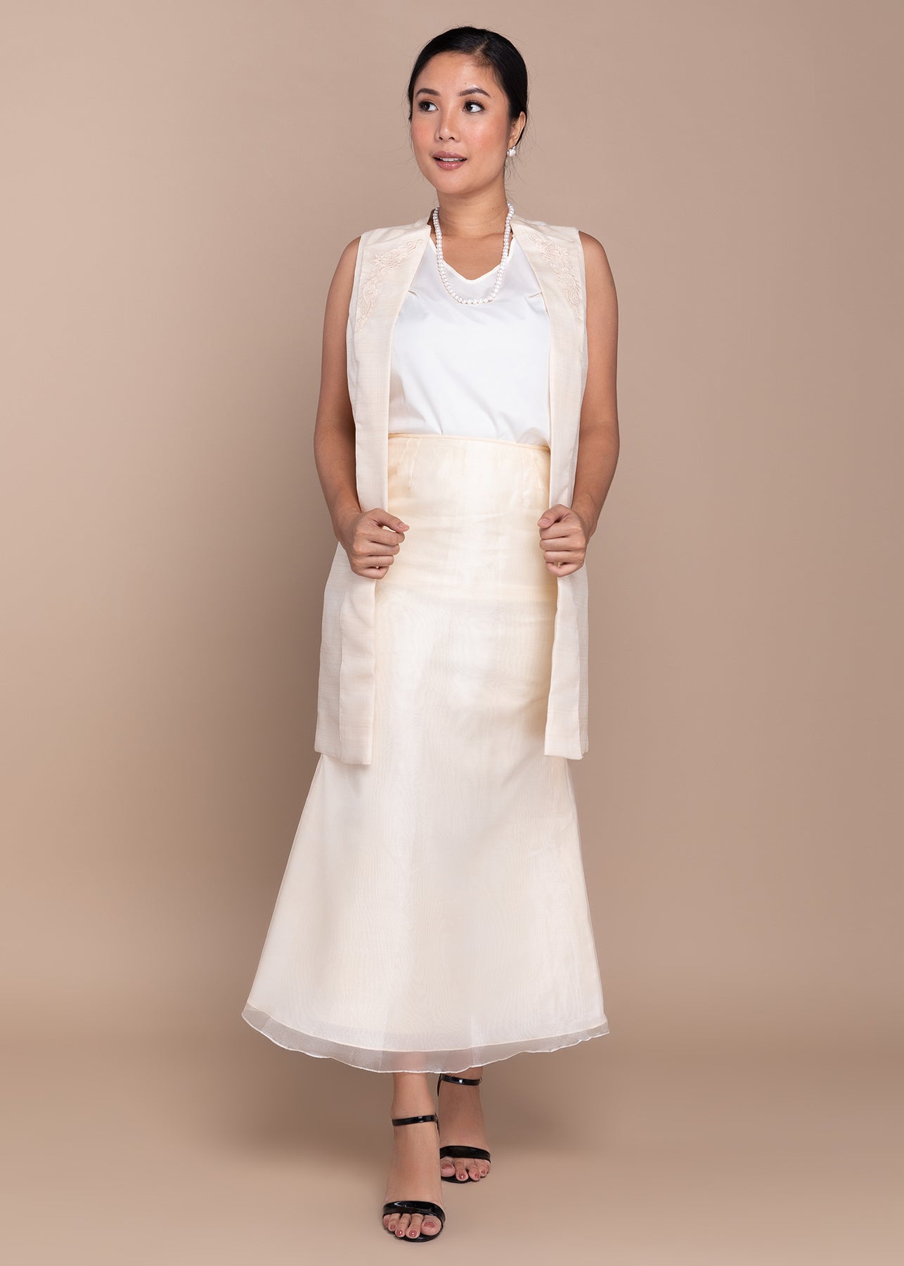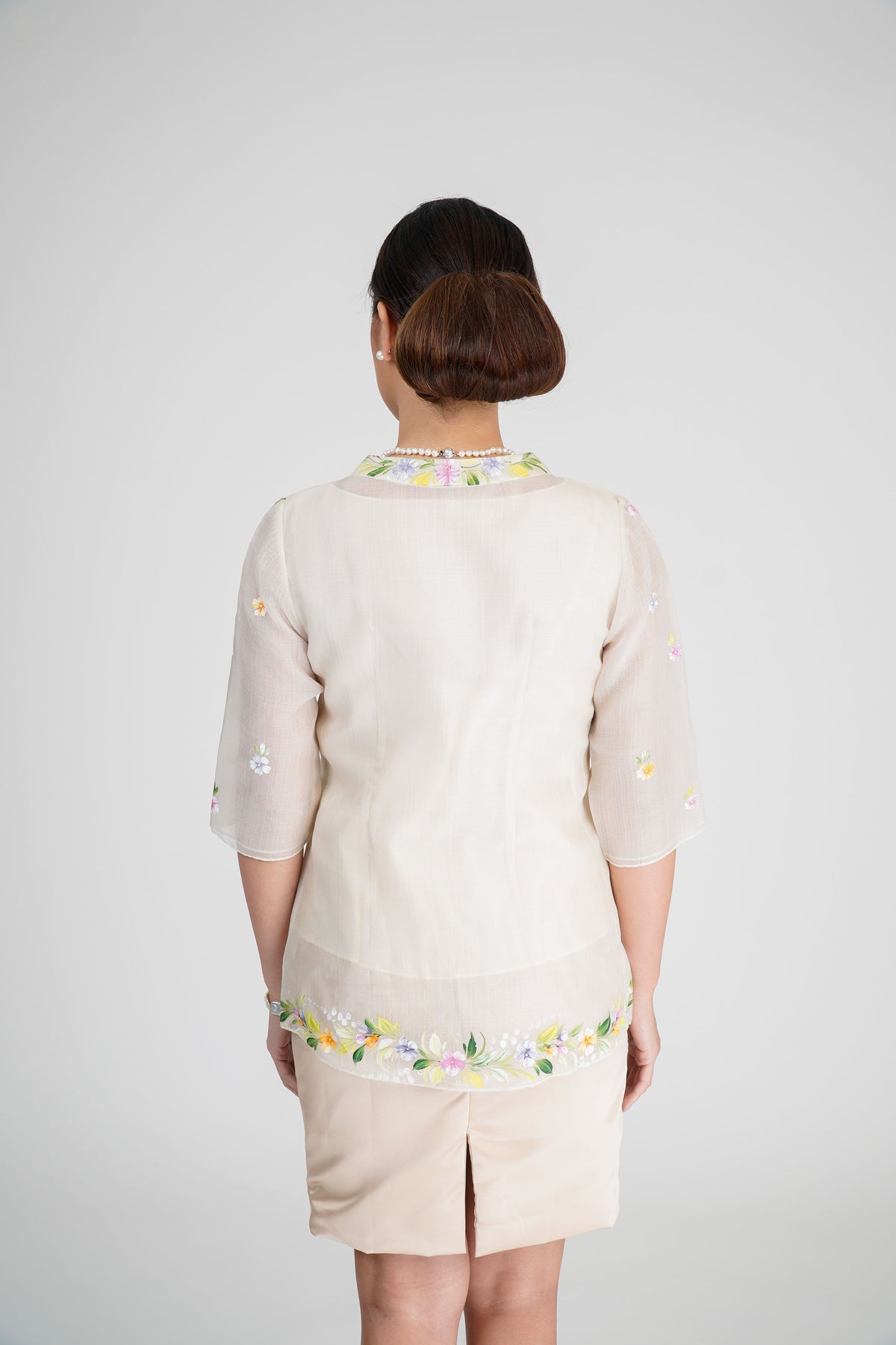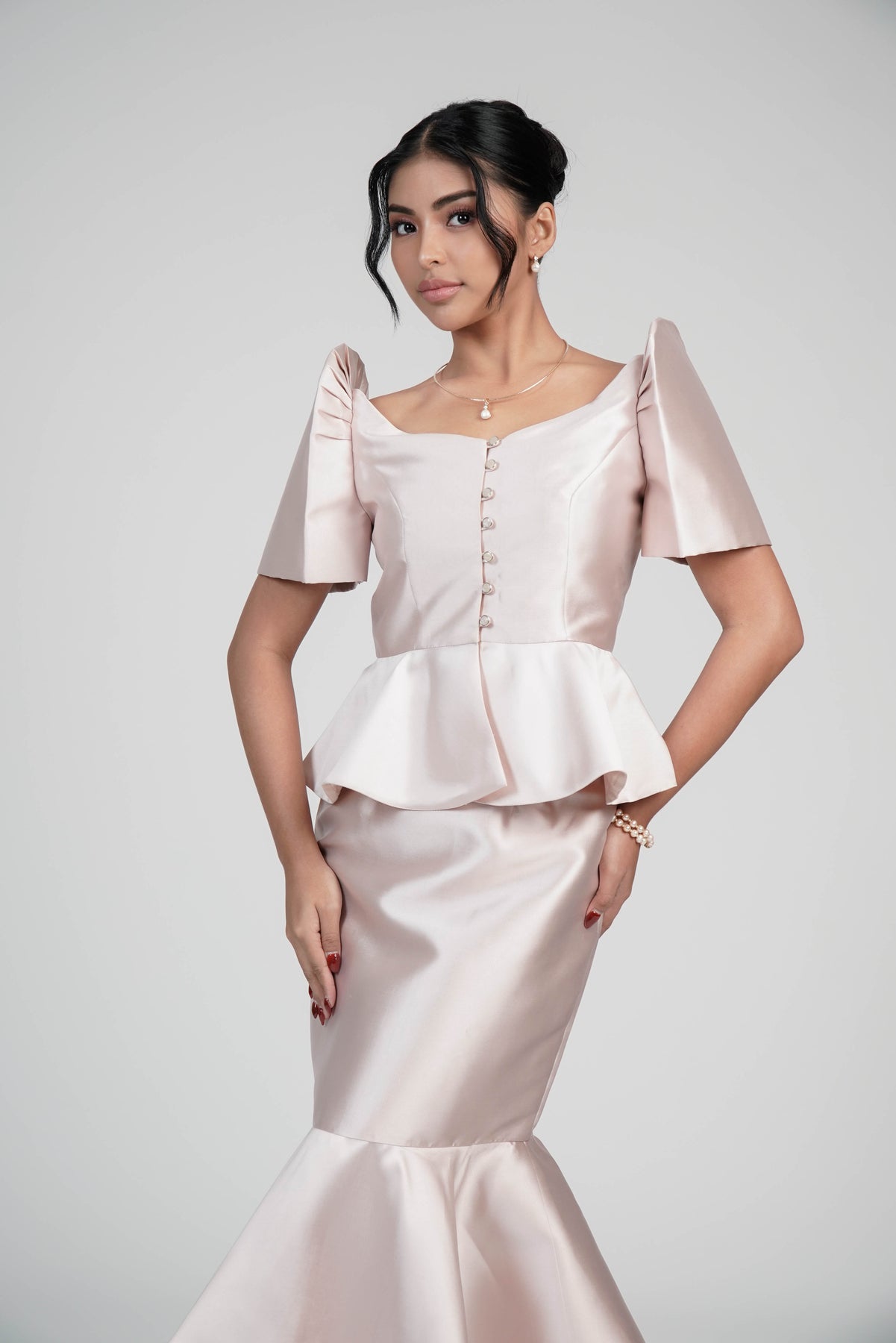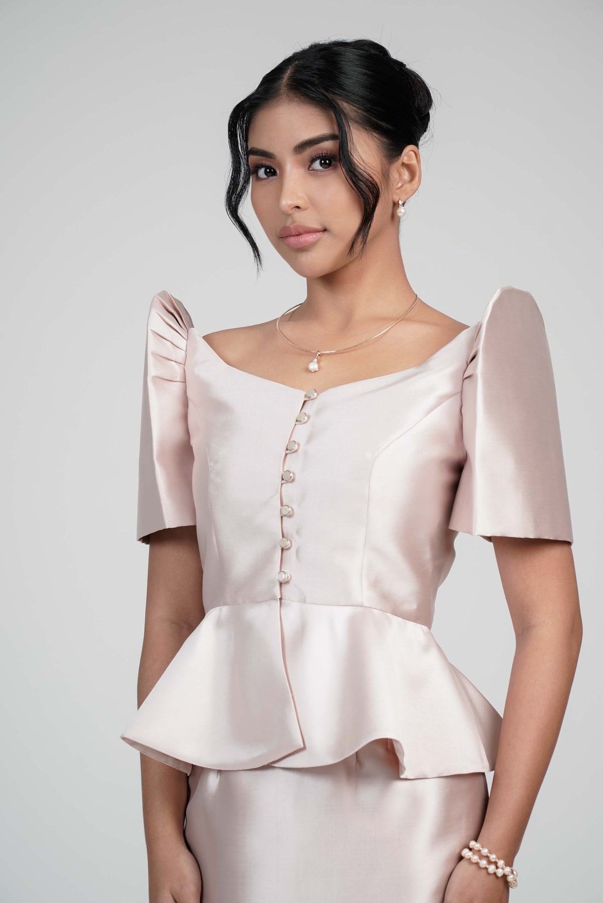 Women's Filipiniana Dress with Detachable Sleeves in Beige