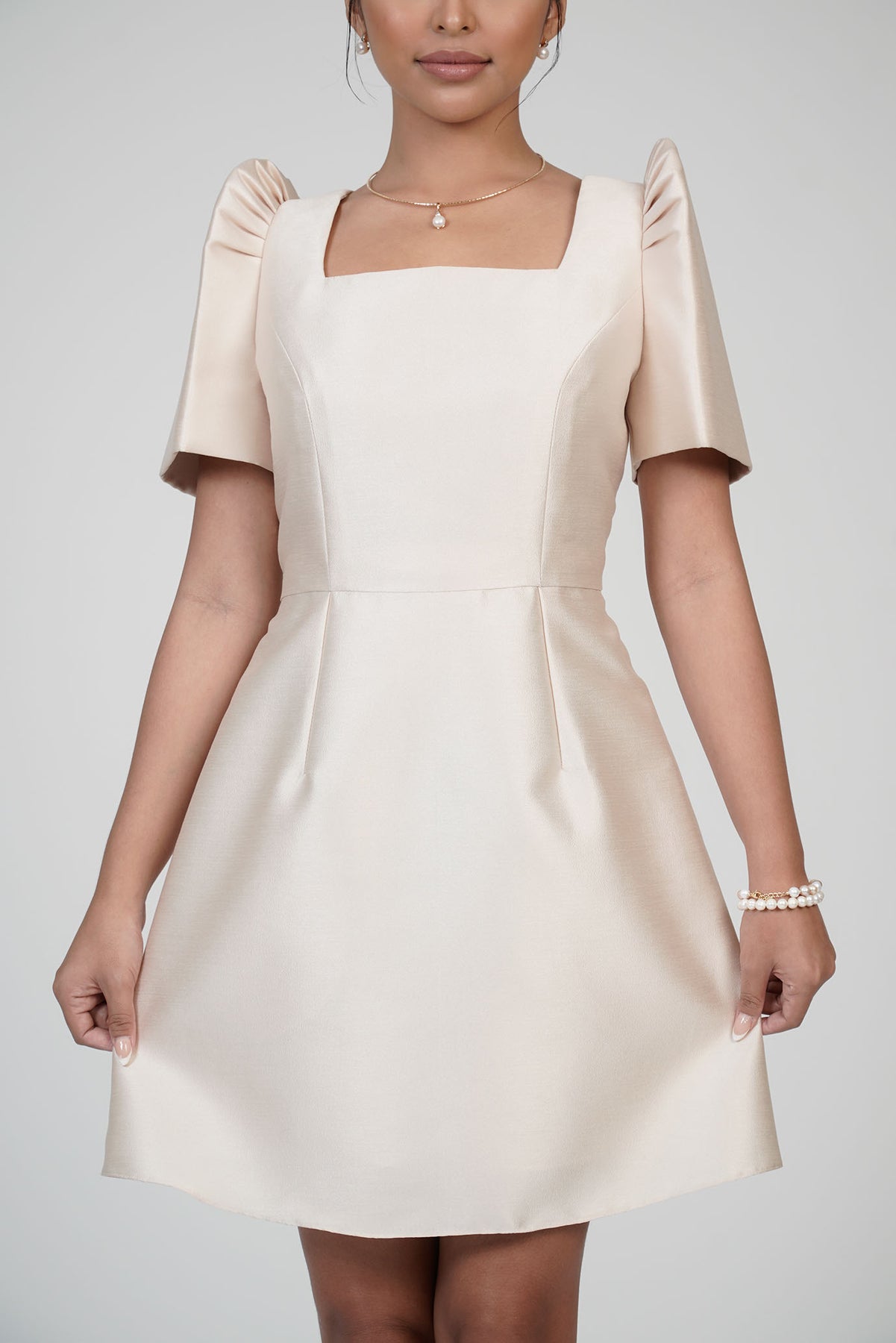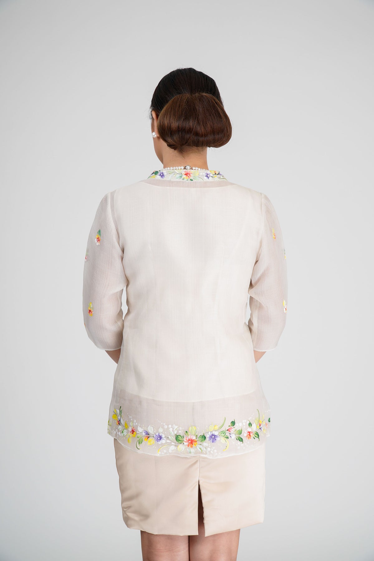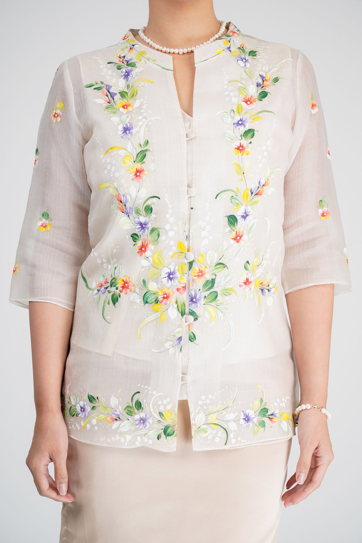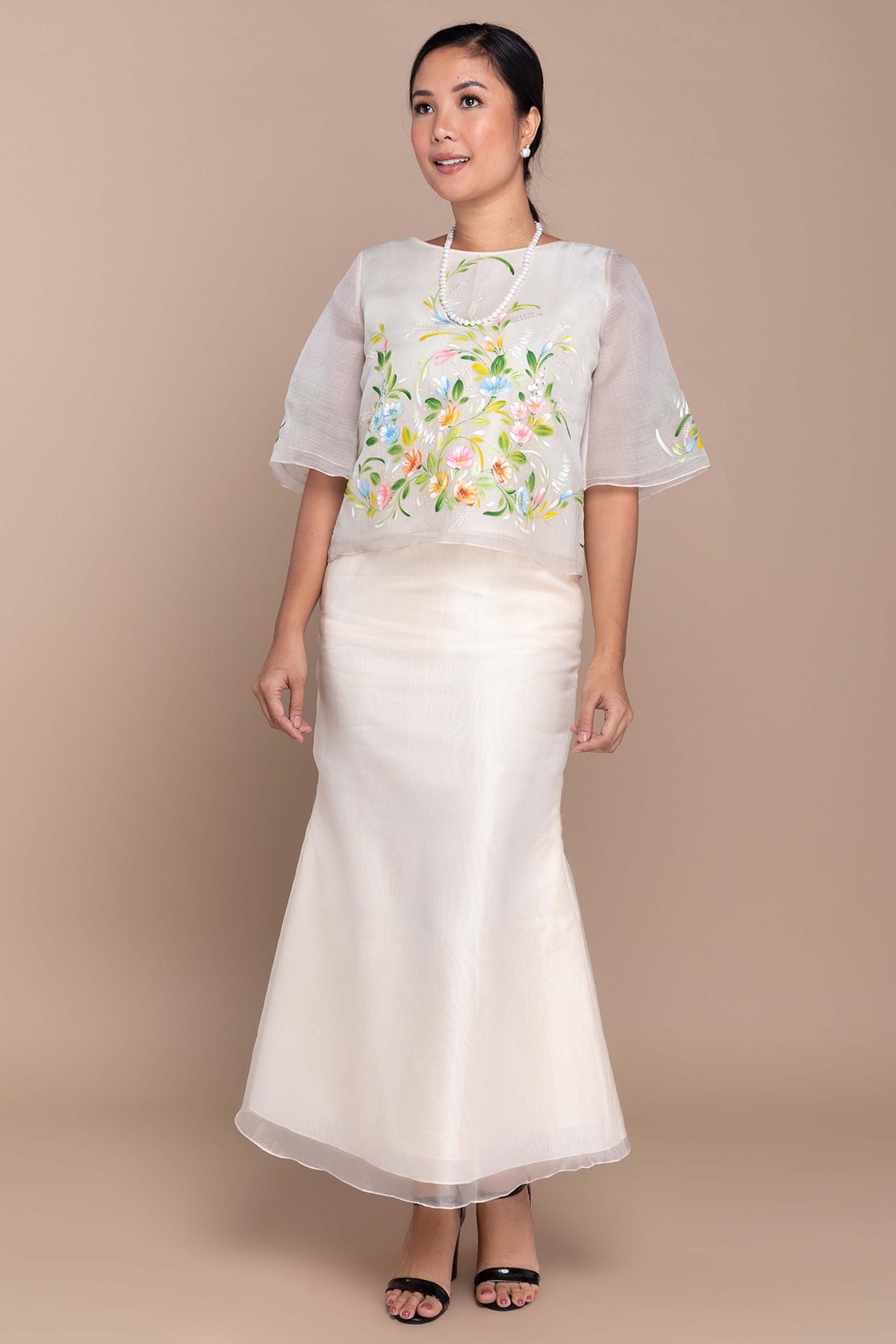 Women's Filipiniana Dress with Detachable Sleeves in Beige
