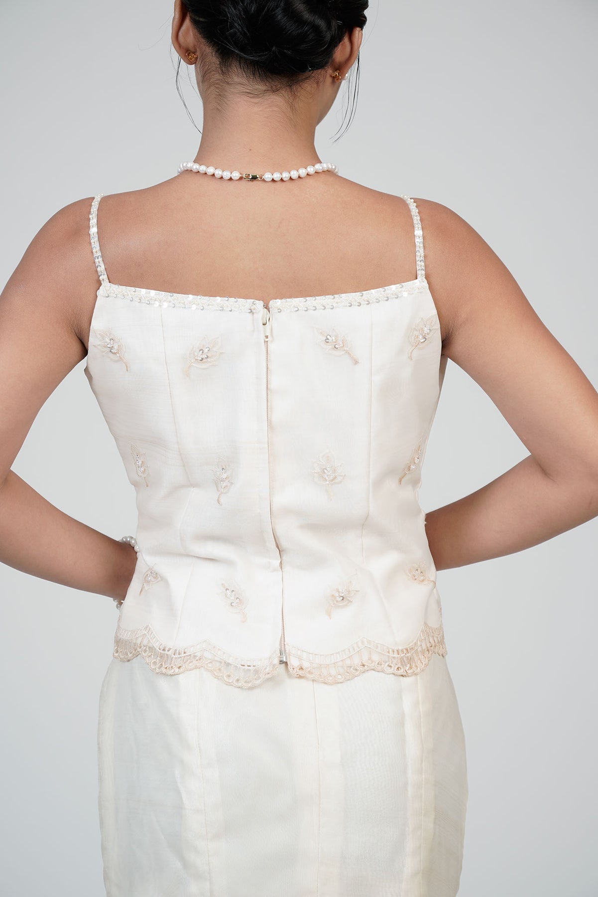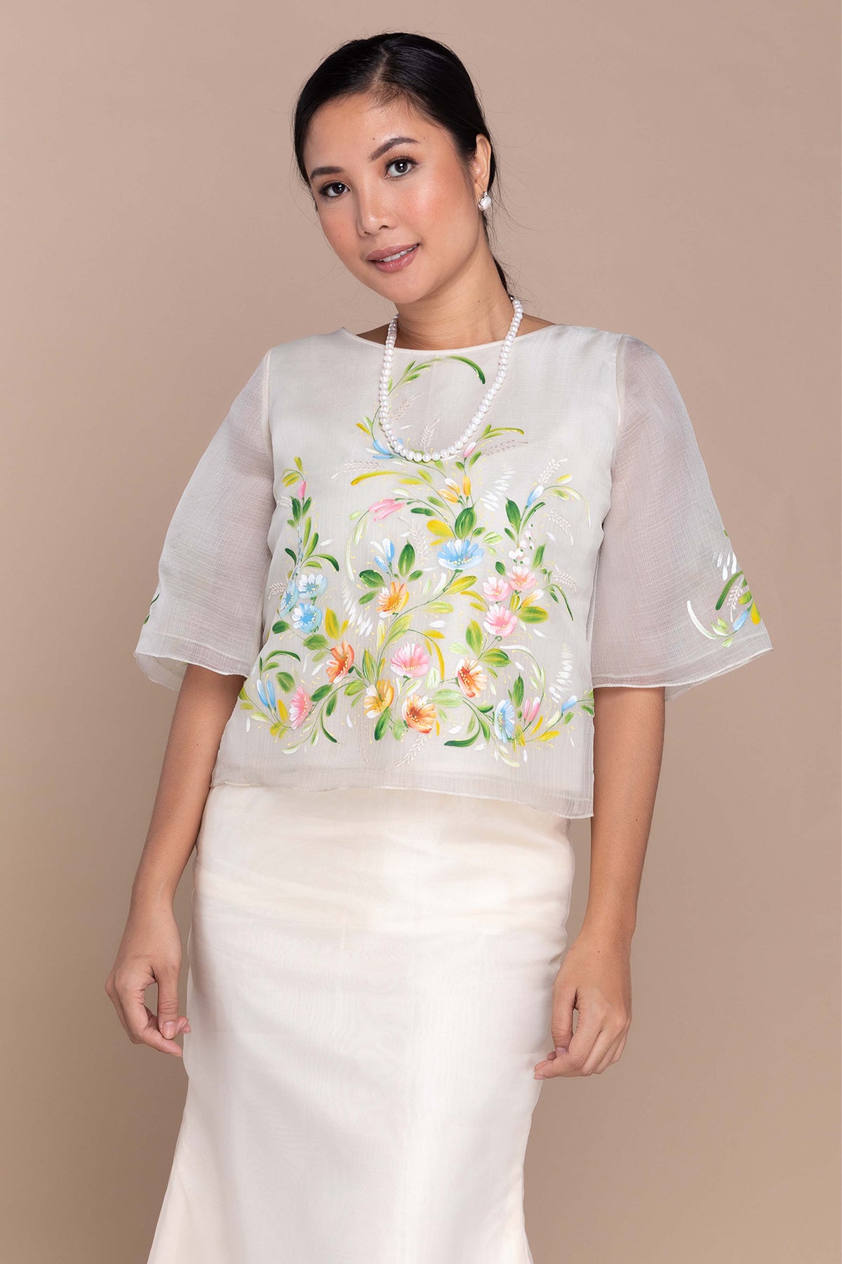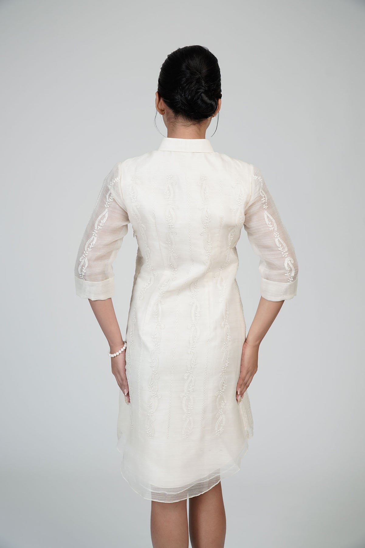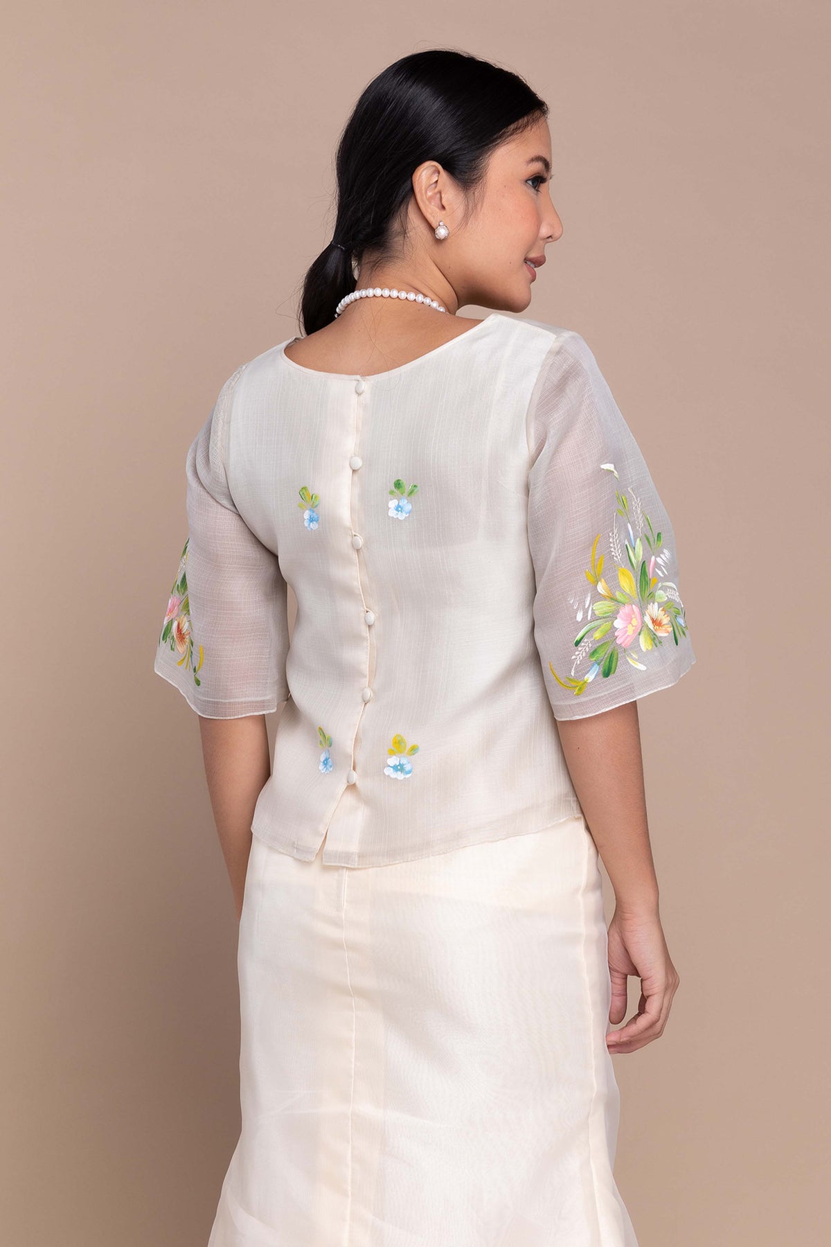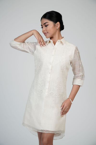 Women's Filipiniana Dress with Detachable Sleeves in Beige