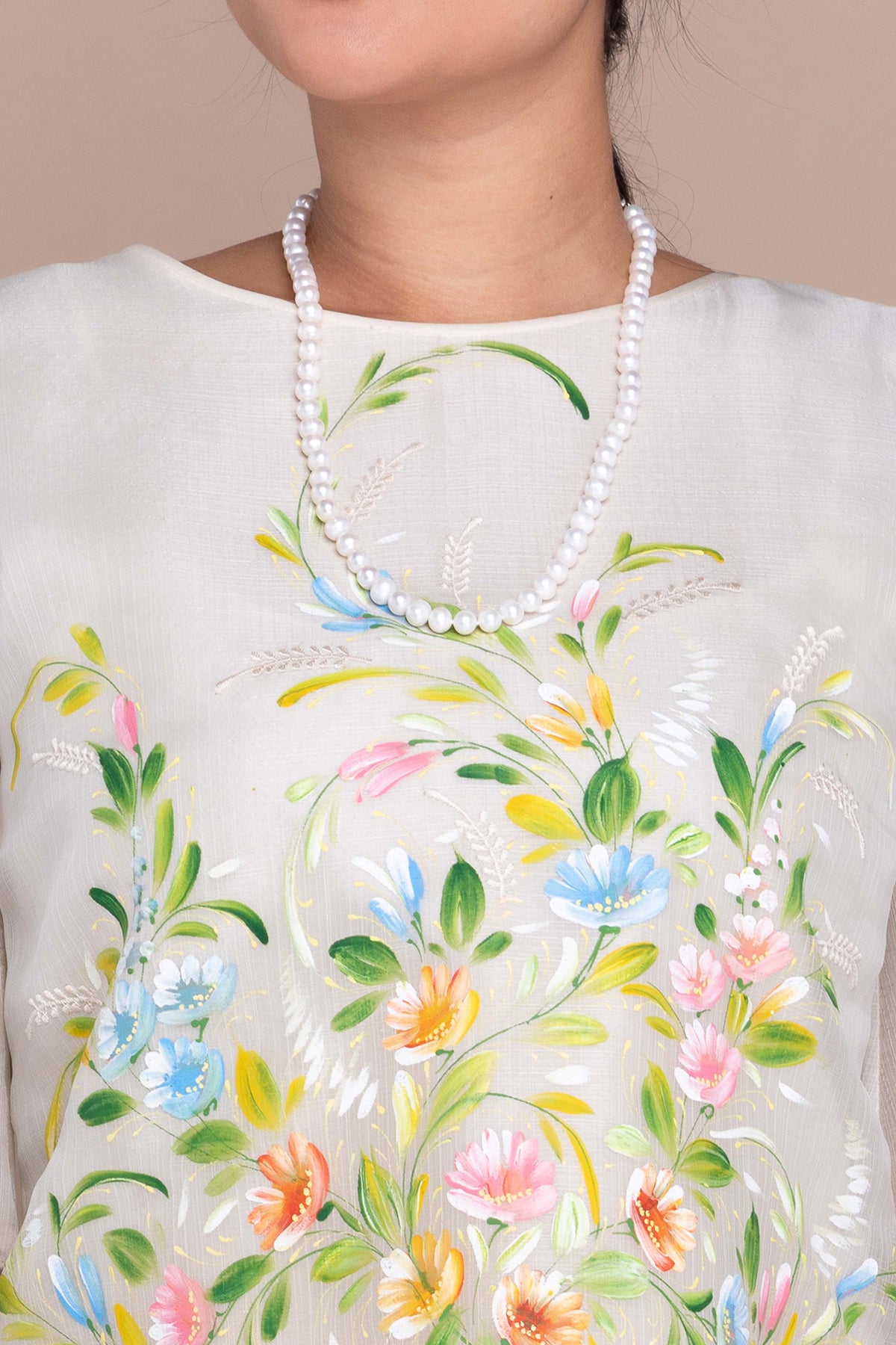Women's Cocoon Kimona with Hand-Painted Floral Accent
