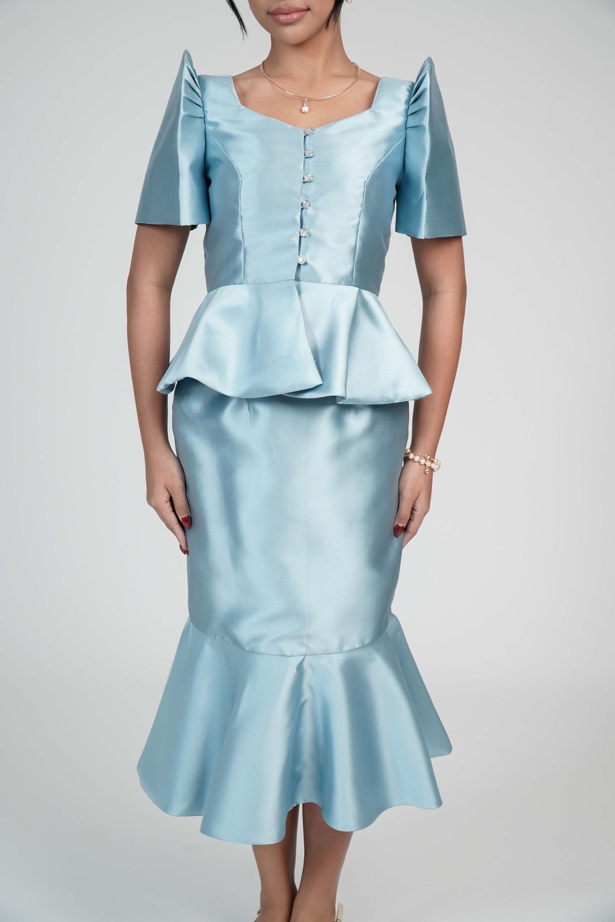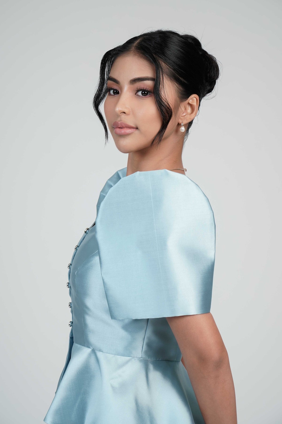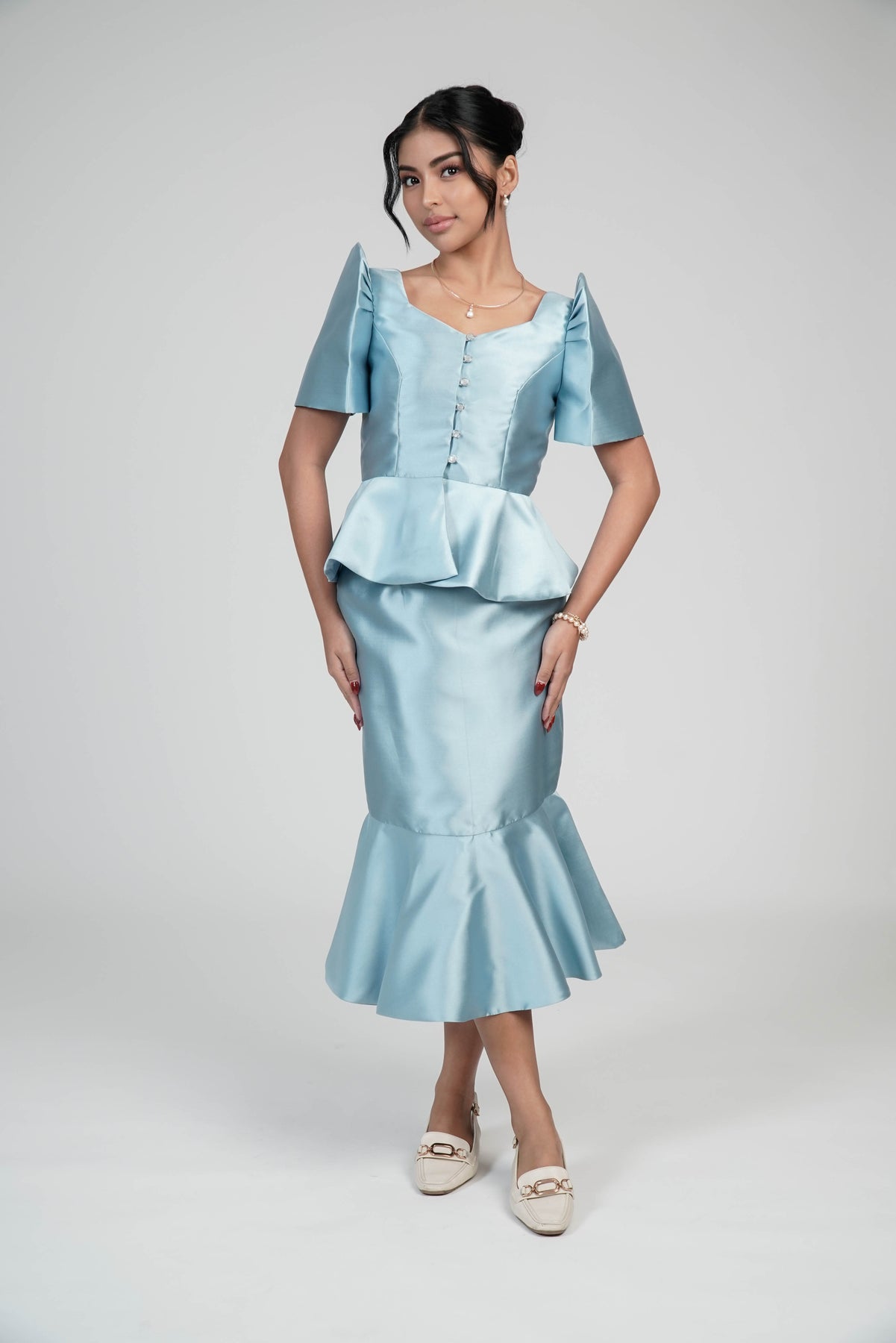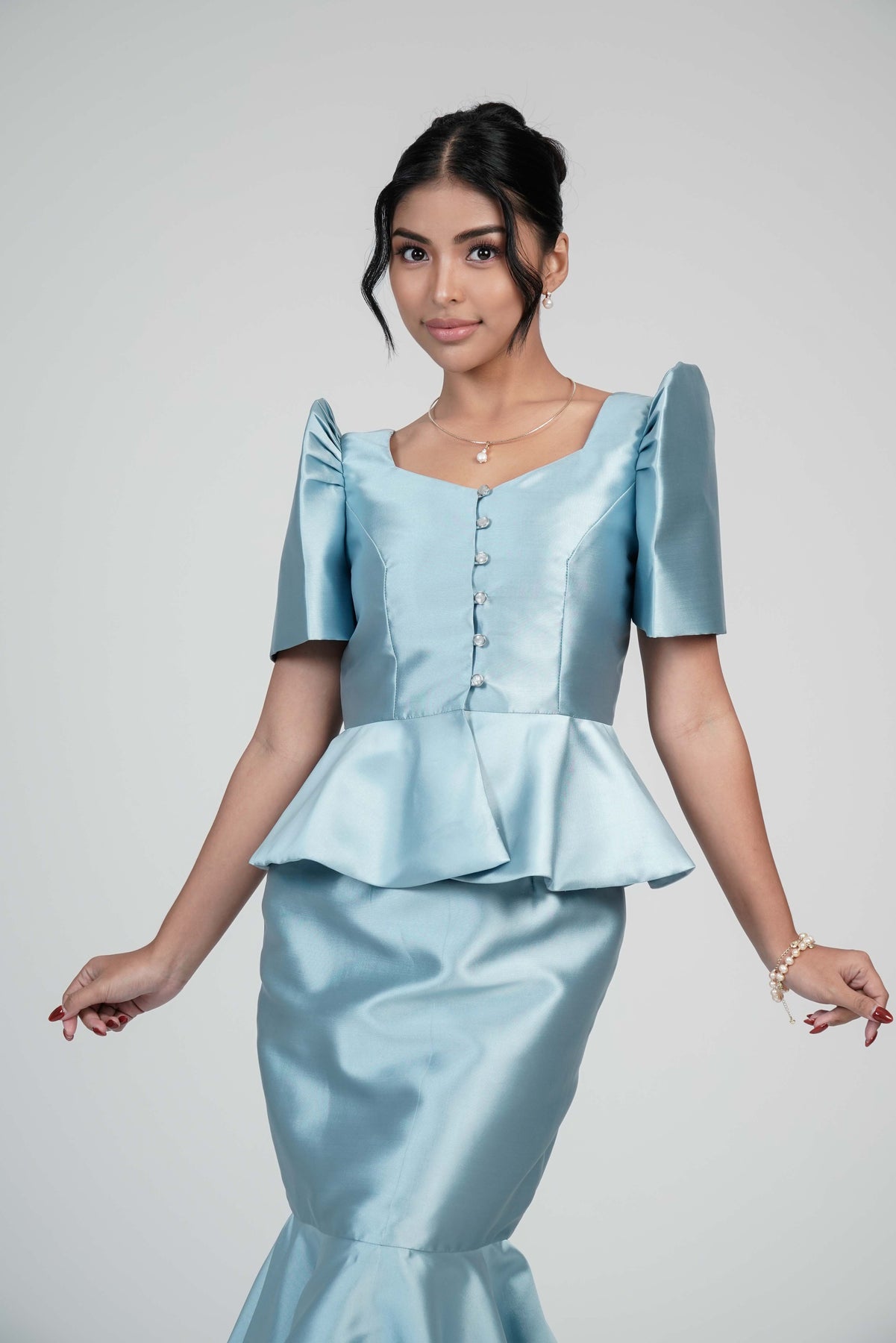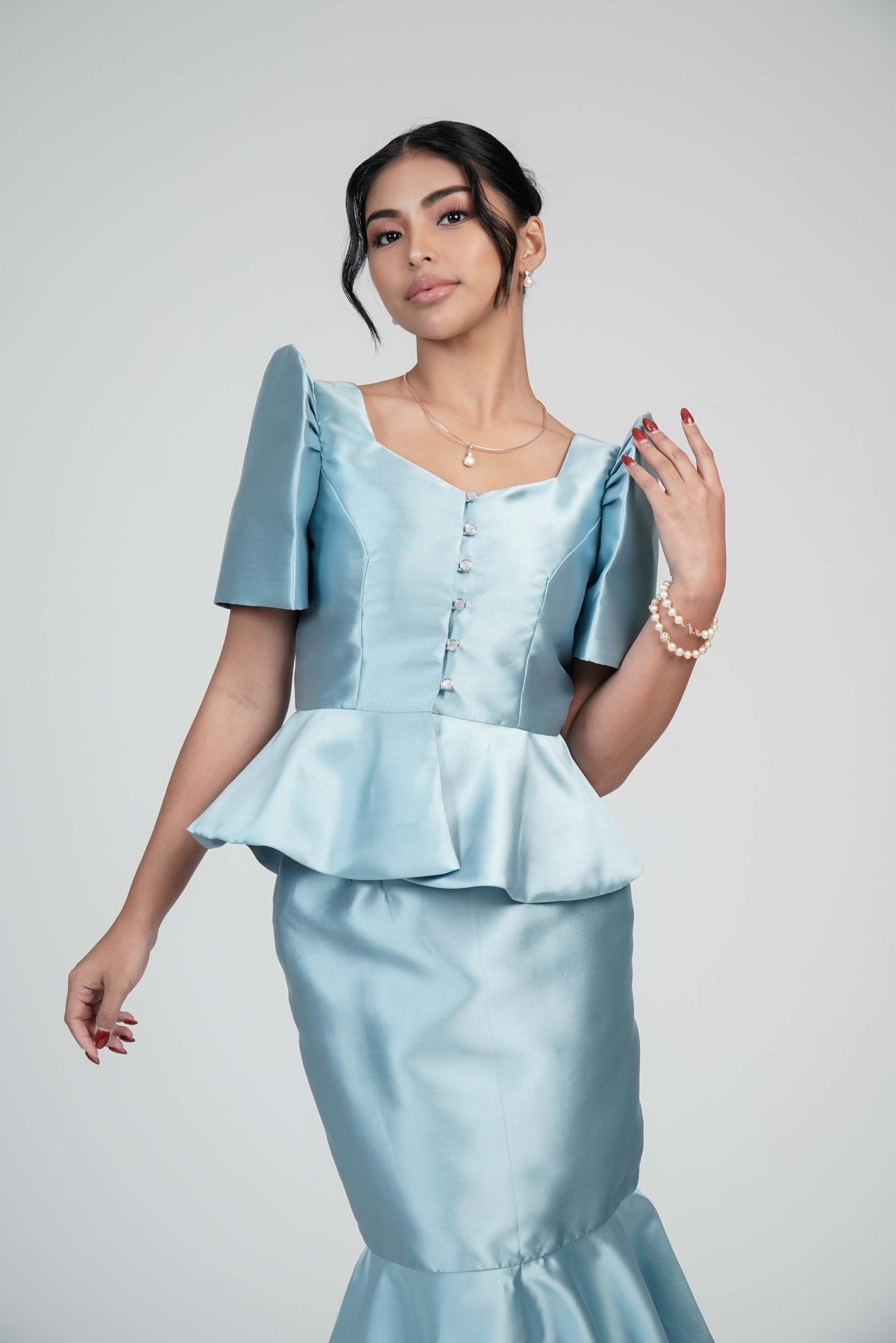 Girl's Filipiñiana Inspired top and Skirt Set in Blue