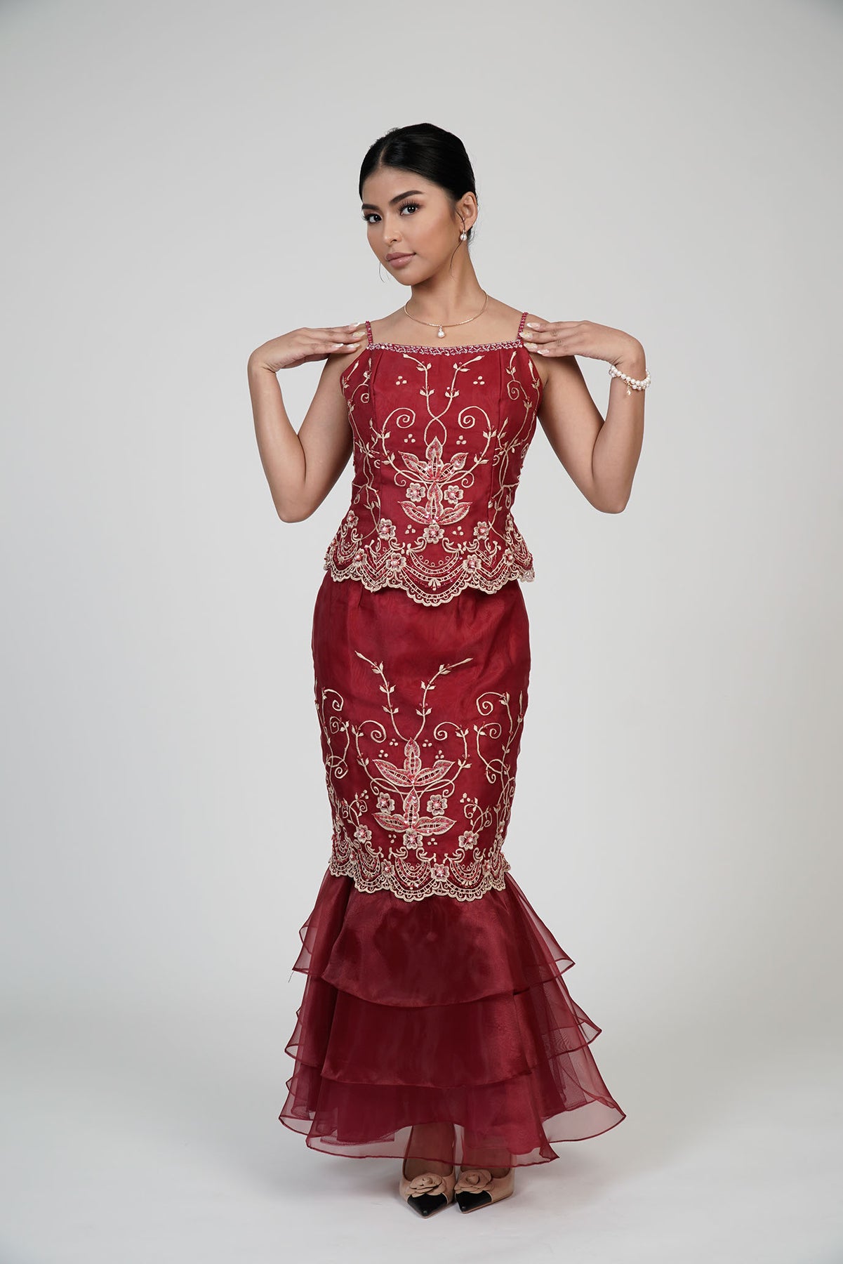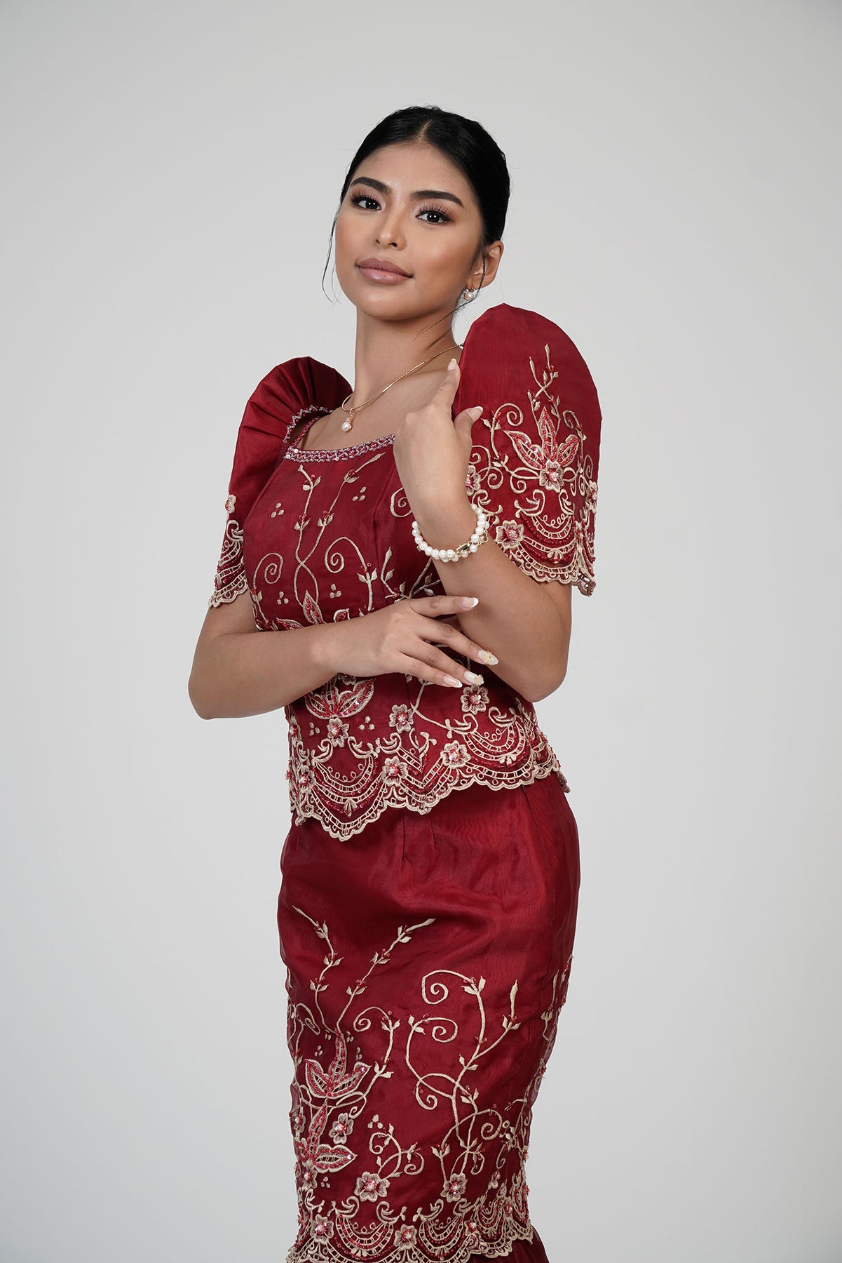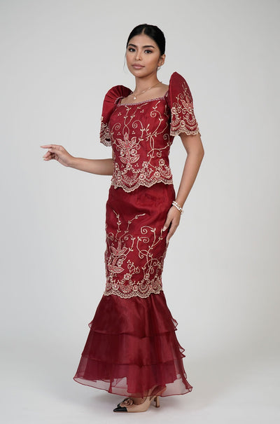 Women's Filipiniana Organza Ophelia Gown Maroon