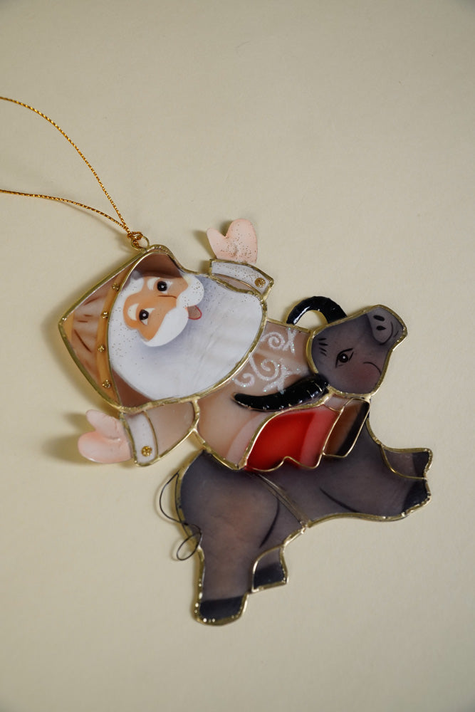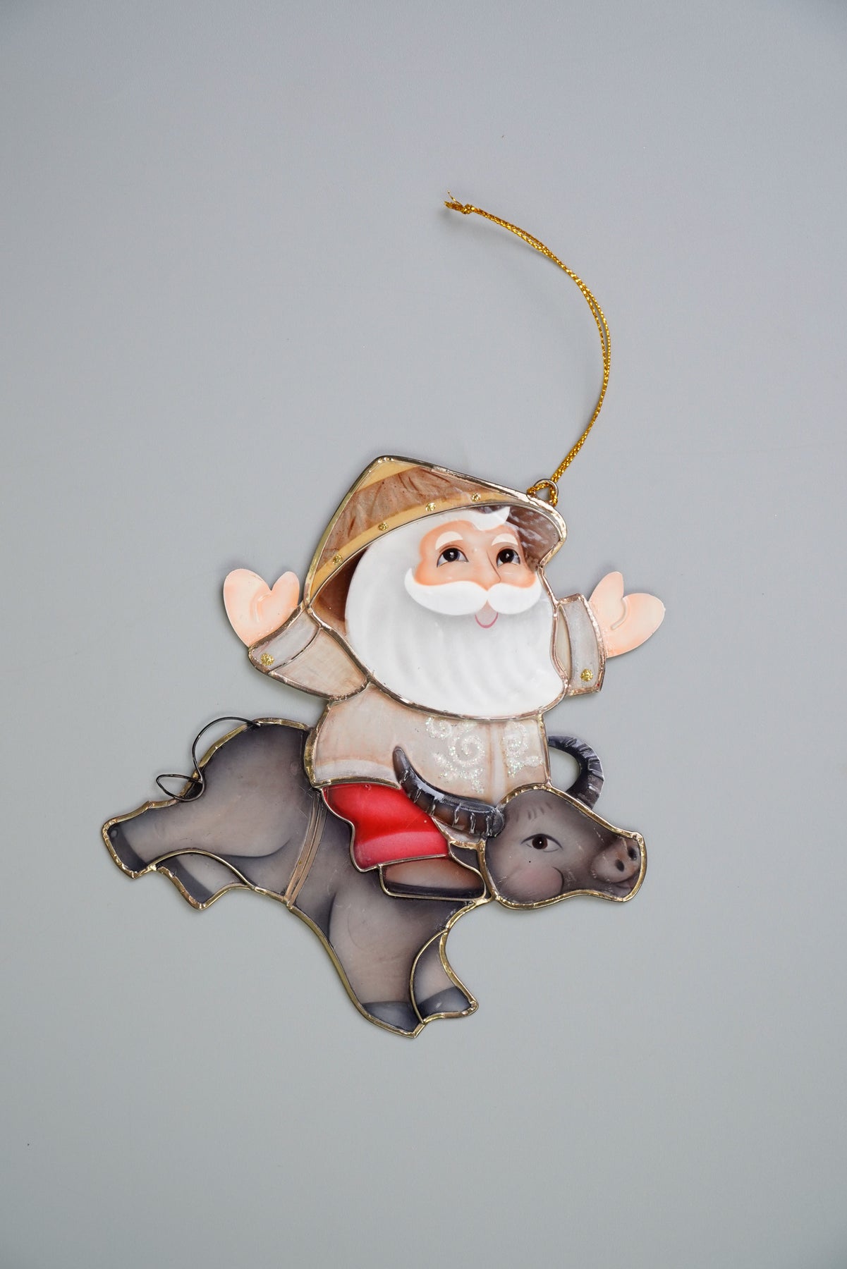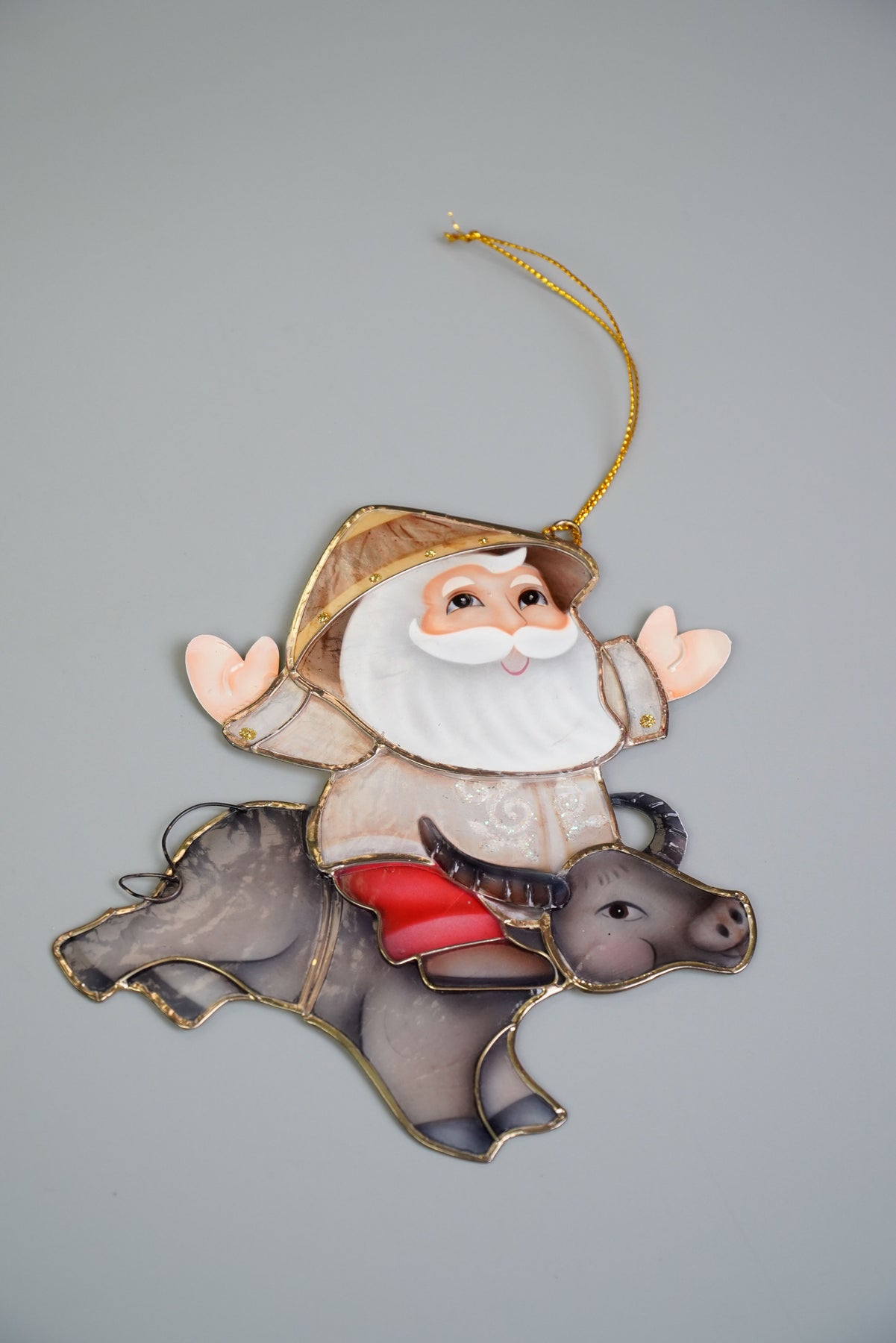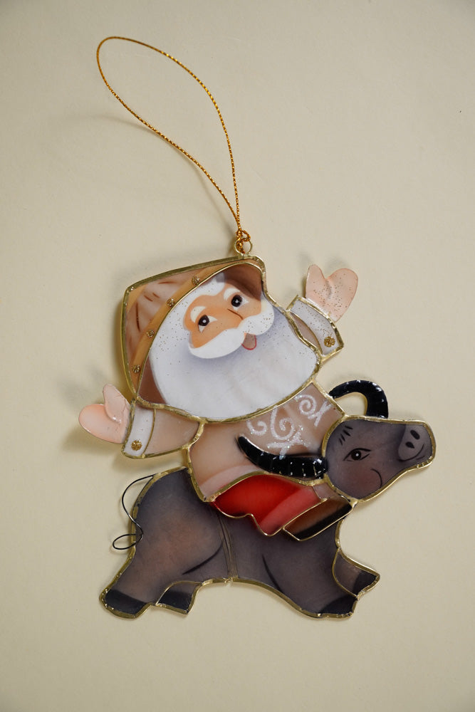 The classic miniature Santa with kalabaw and thread hangers decoration takes on a Filipino theme. Created and handcrafted by talented Filipino artisans.