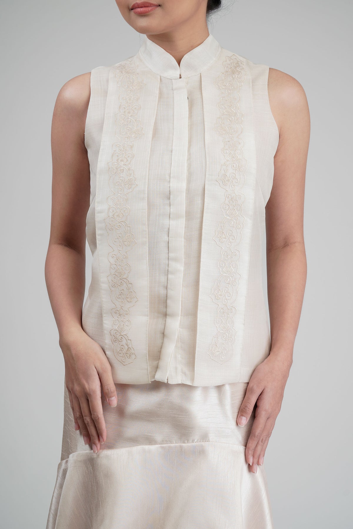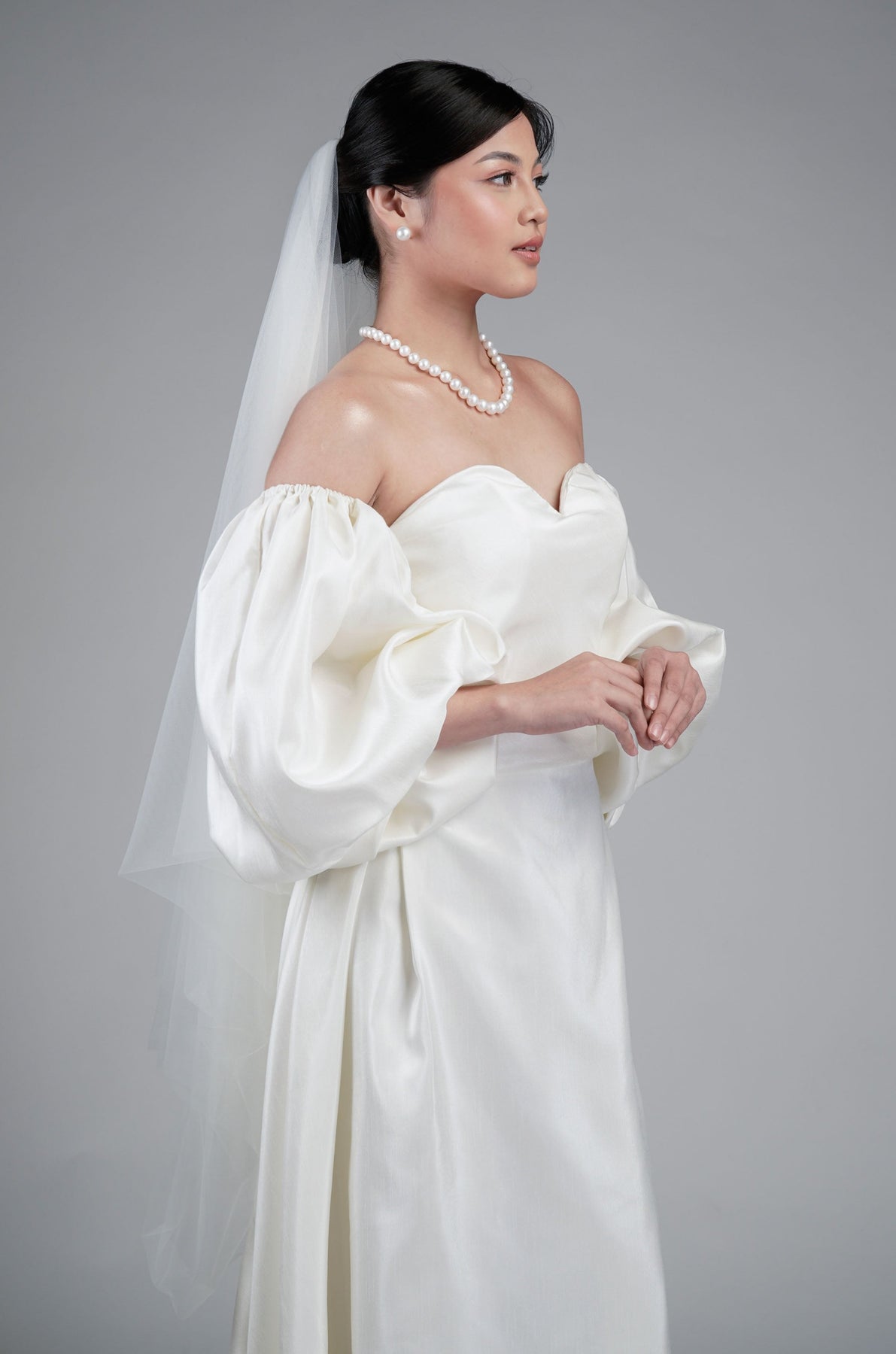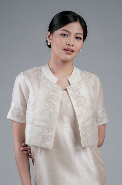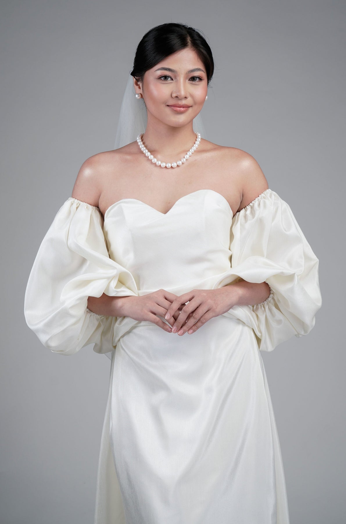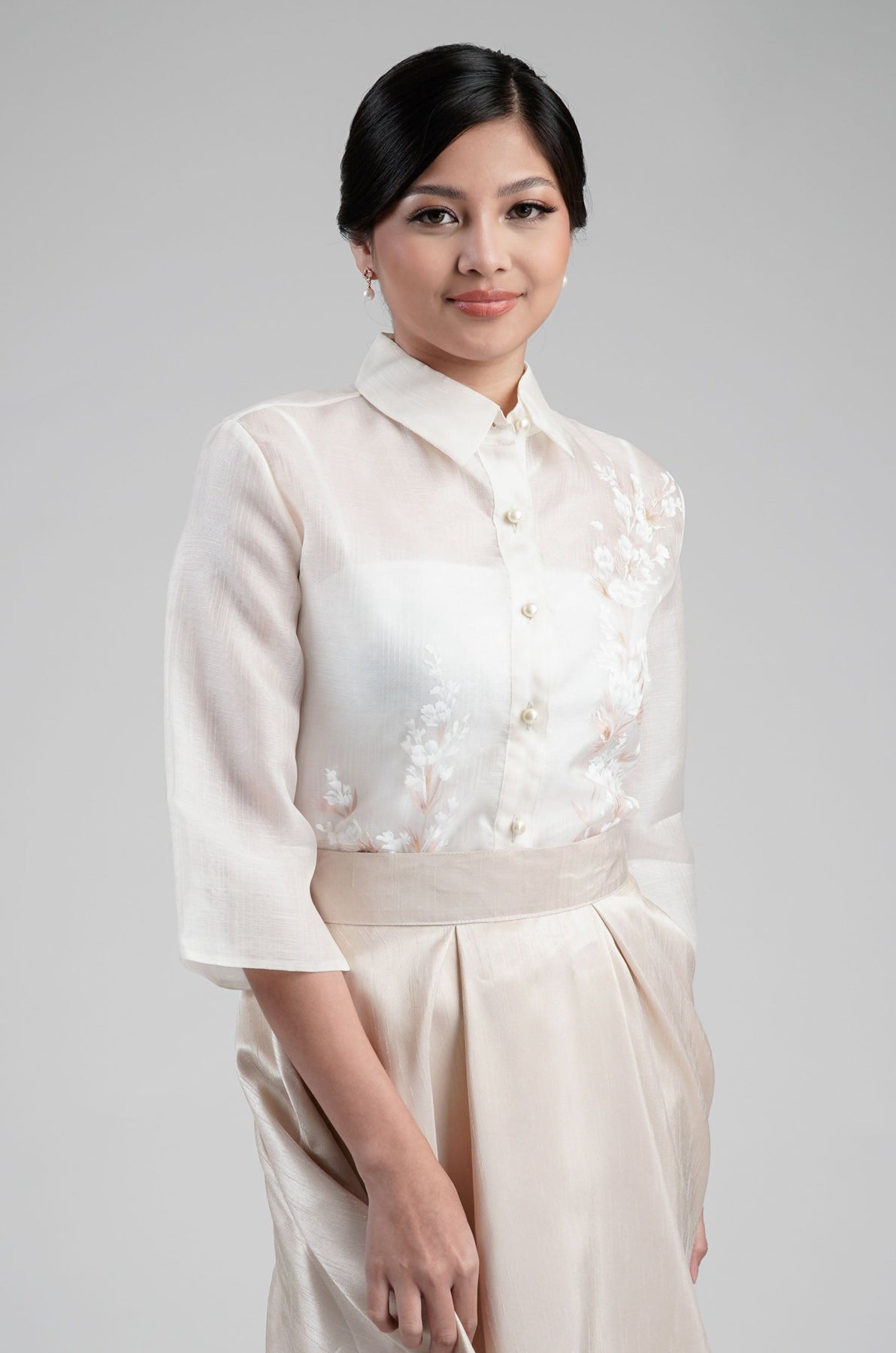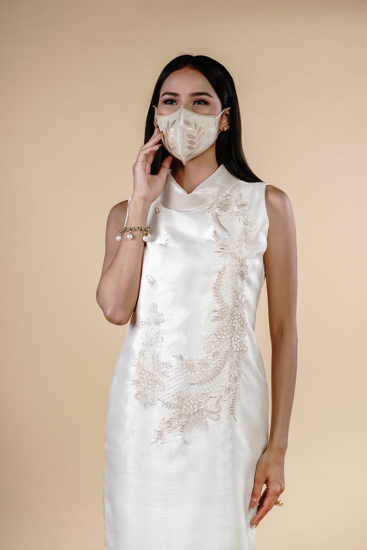 I wore the ivory colored shanthng dress during my wedding day! It was form fitting and had a nice hug at the waist area. Dress is not heavy, and I had comfort wearing it the whole day. Gown was long, as I stand 5'1", I wore a 3in heels and the hem falls slightly touching the floor.