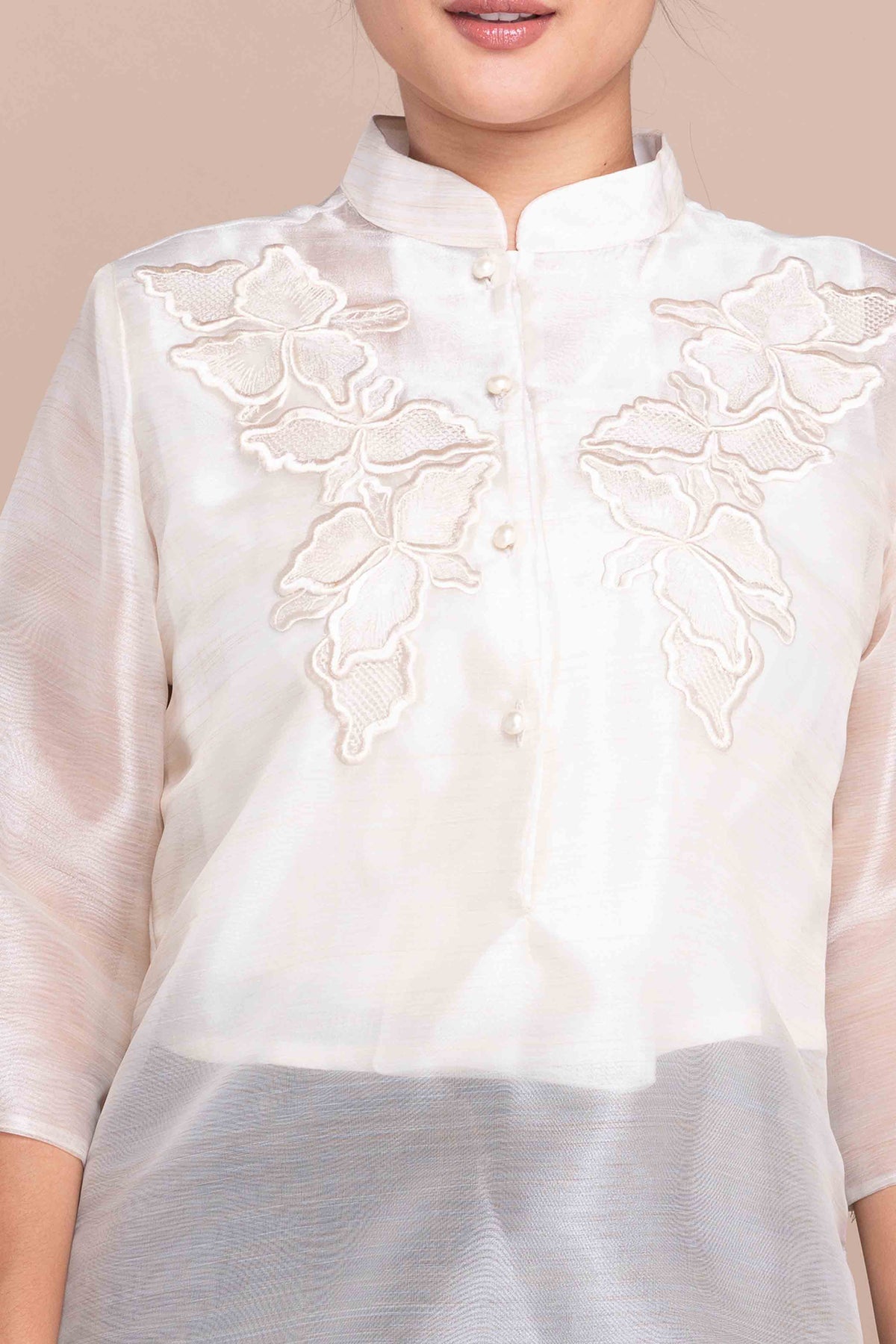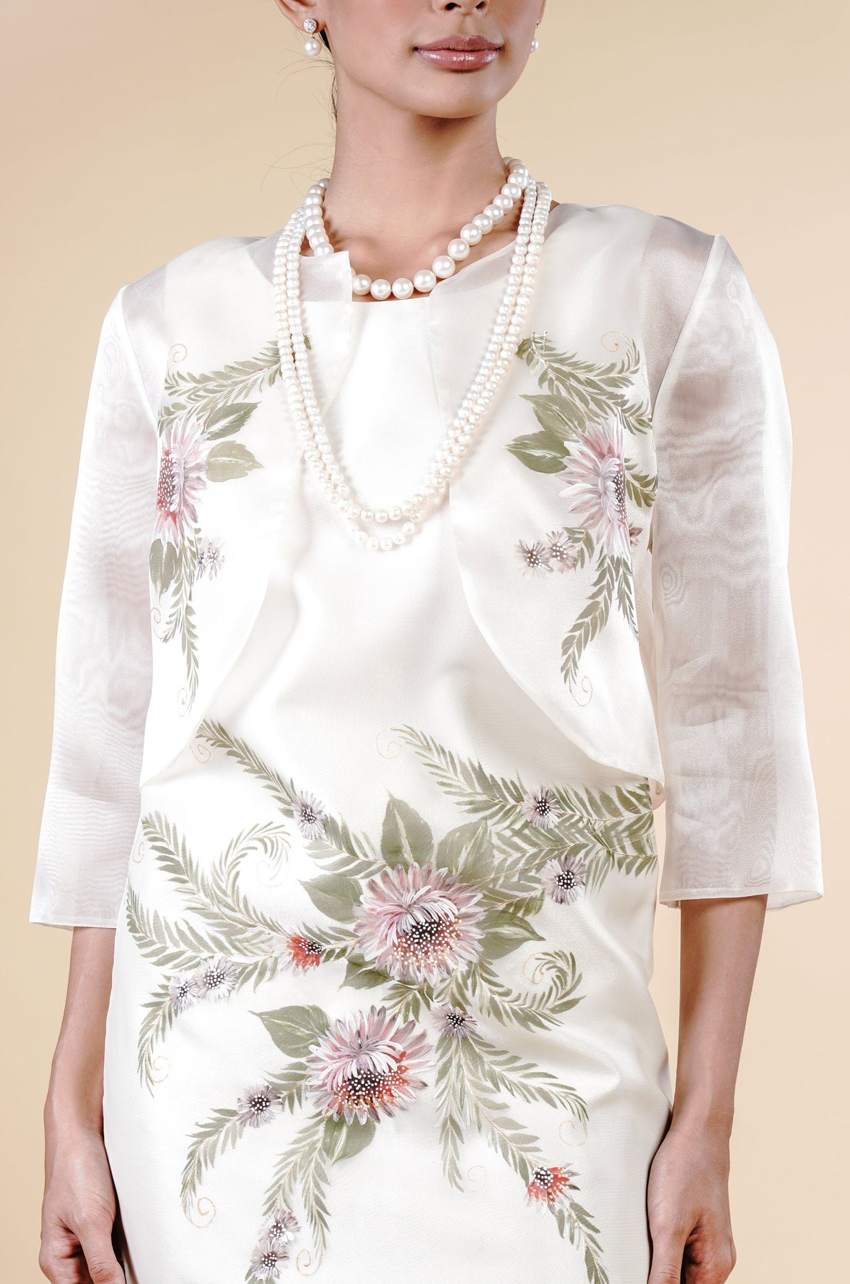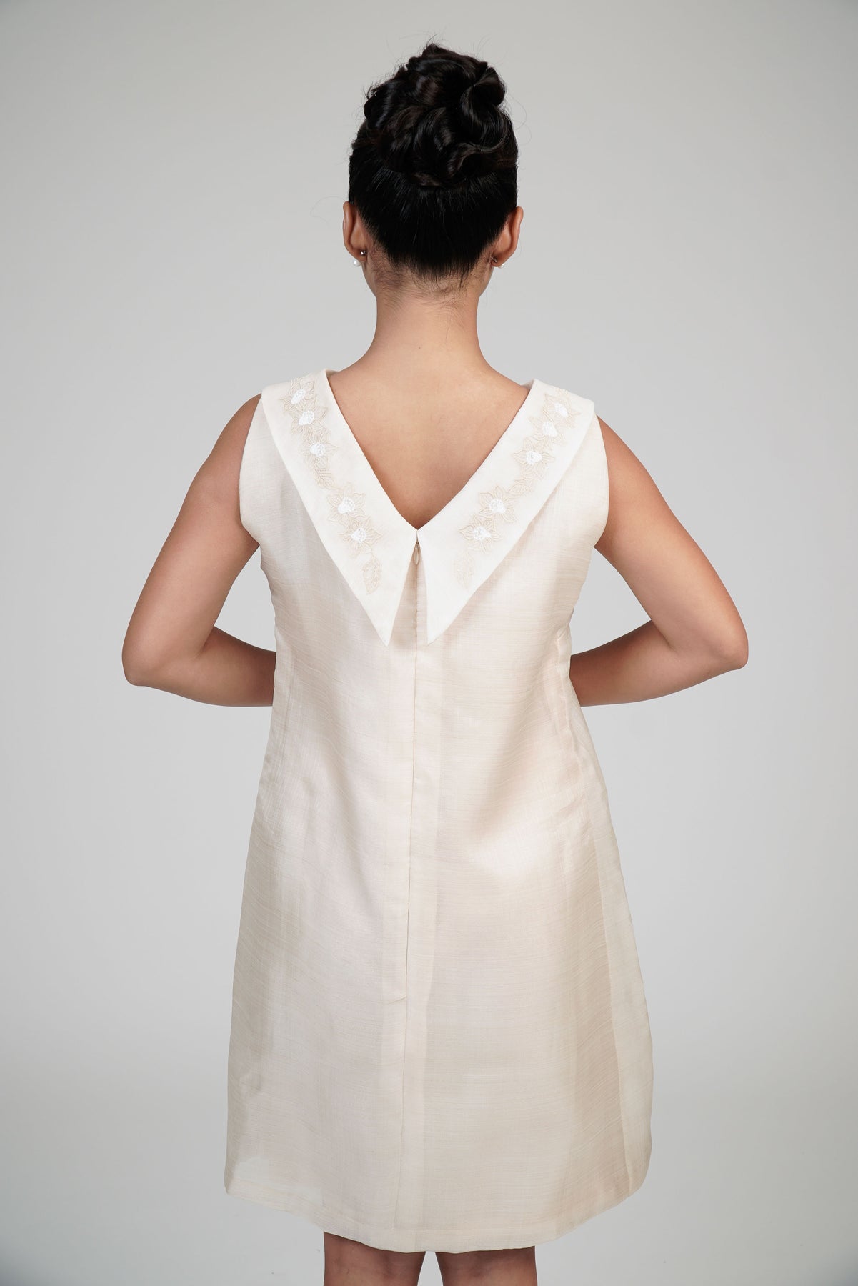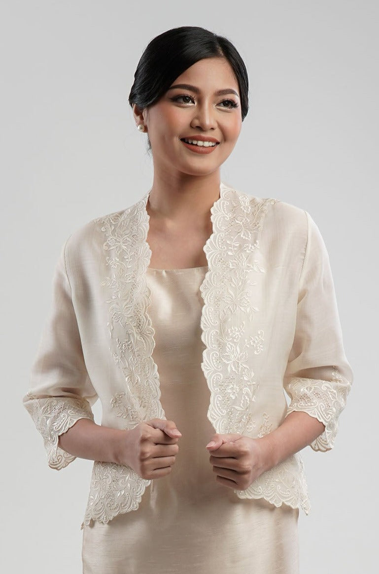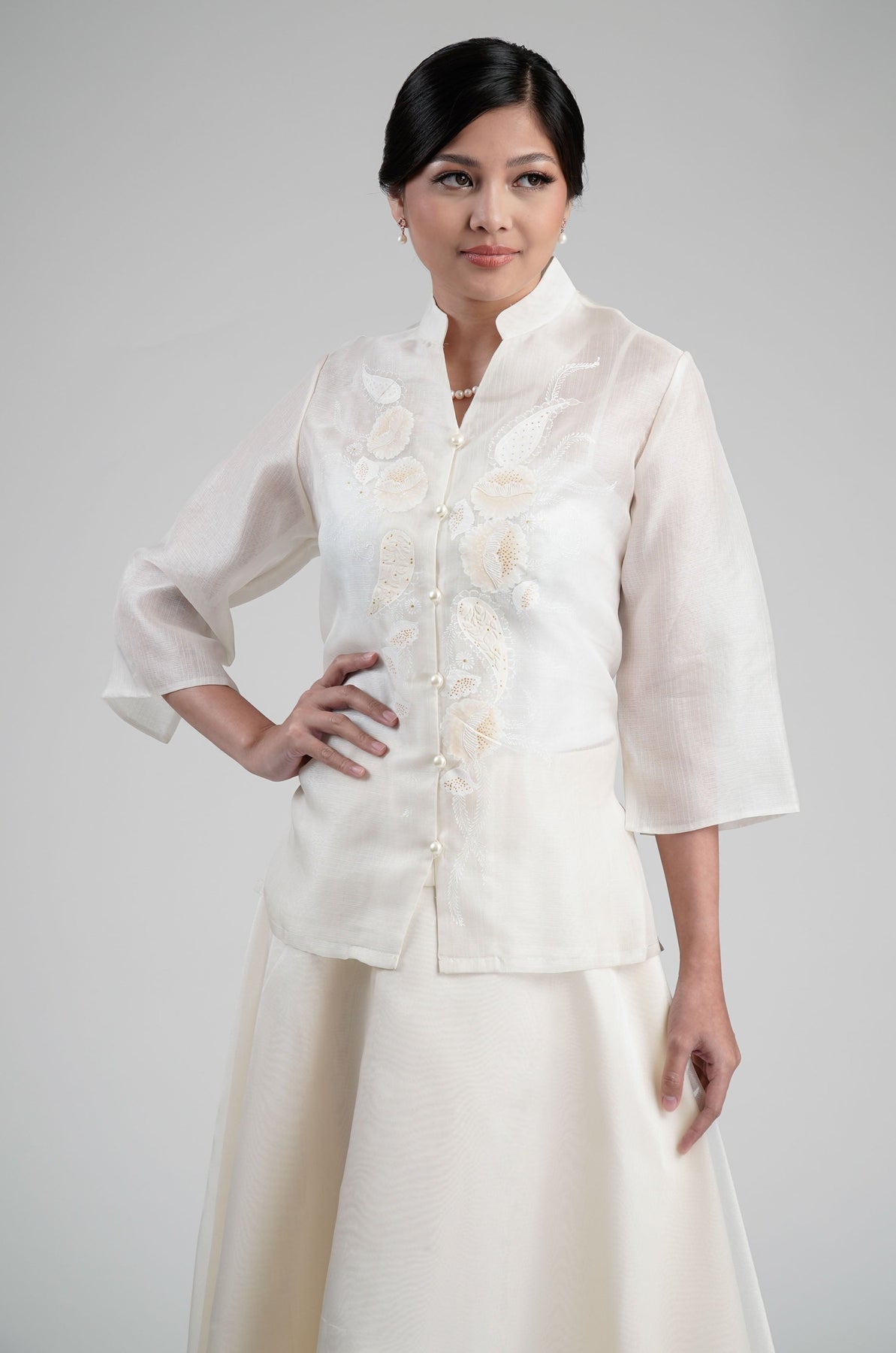 I wore the ivory colored shanthng dress during my wedding day! It was form fitting and had a nice hug at the waist area. Dress is not heavy, and I had comfort wearing it the whole day. Gown was long, as I stand 5'1", I wore a 3in heels and the hem falls slightly touching the floor.