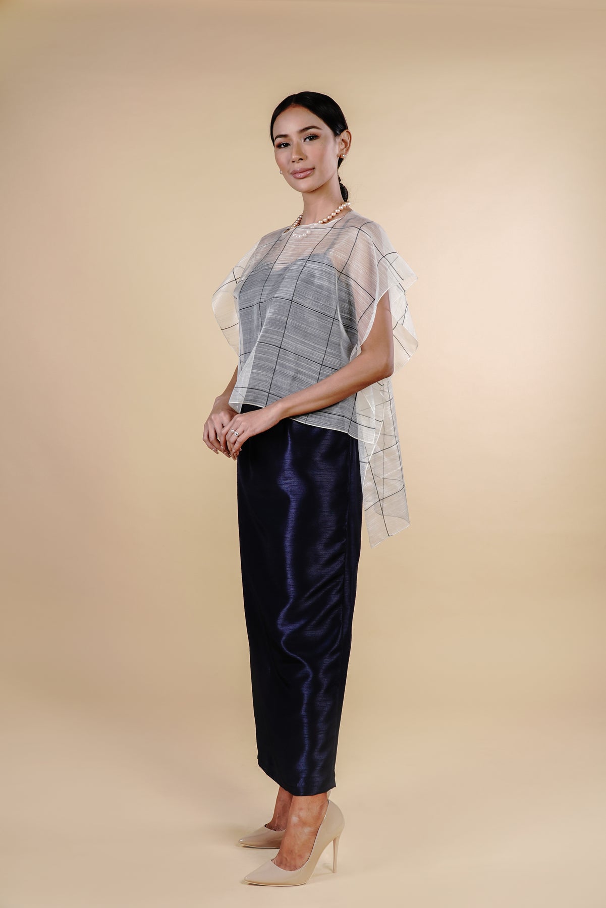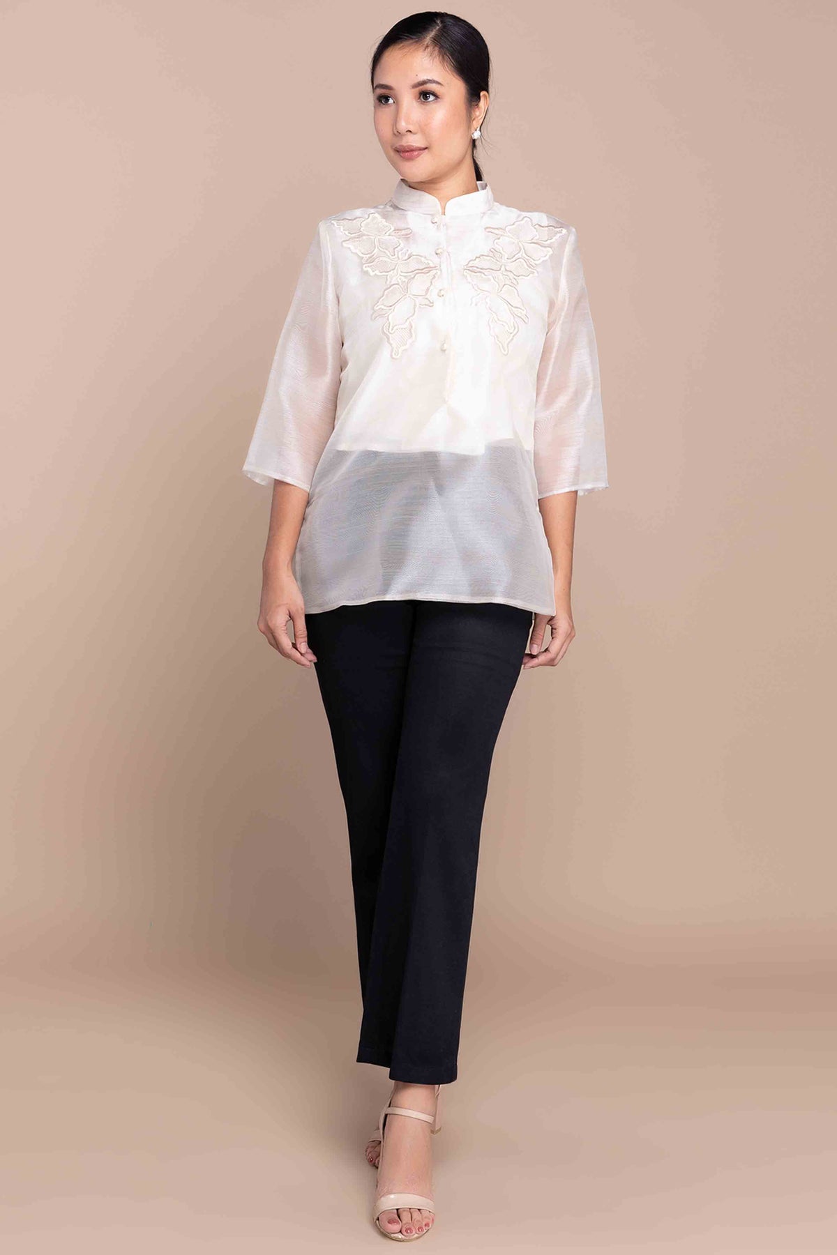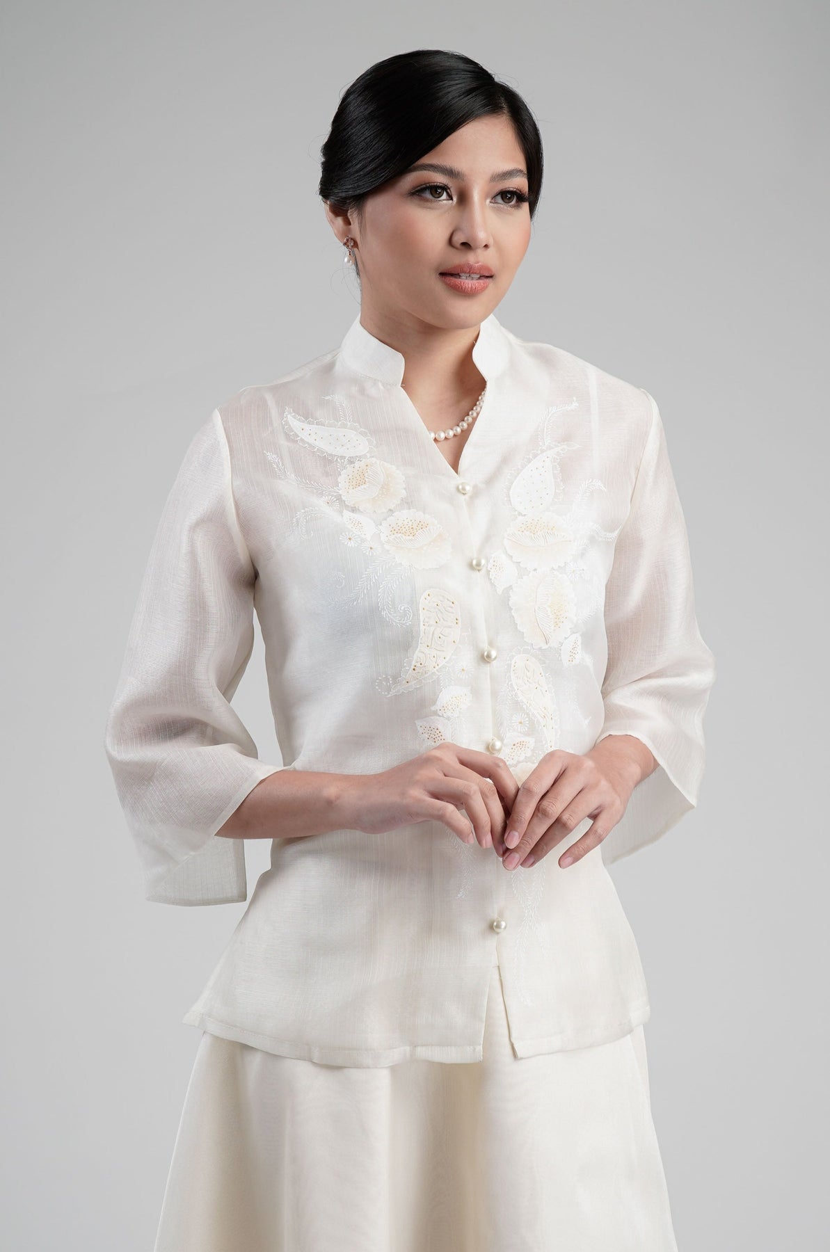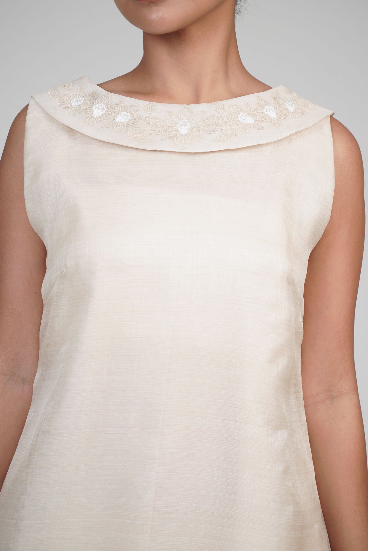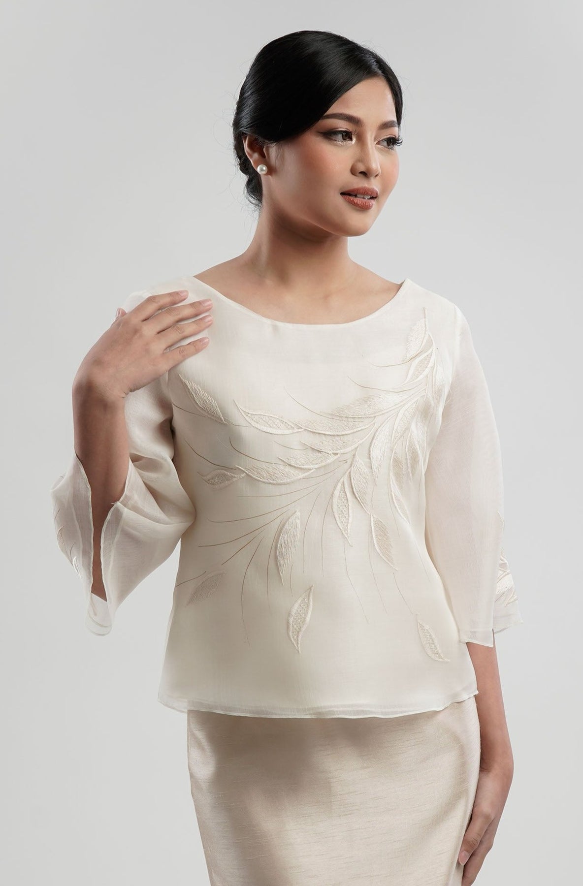 I wore the ivory colored shanthng dress during my wedding day! It was form fitting and had a nice hug at the waist area. Dress is not heavy, and I had comfort wearing it the whole day. Gown was long, as I stand 5'1", I wore a 3in heels and the hem falls slightly touching the floor.