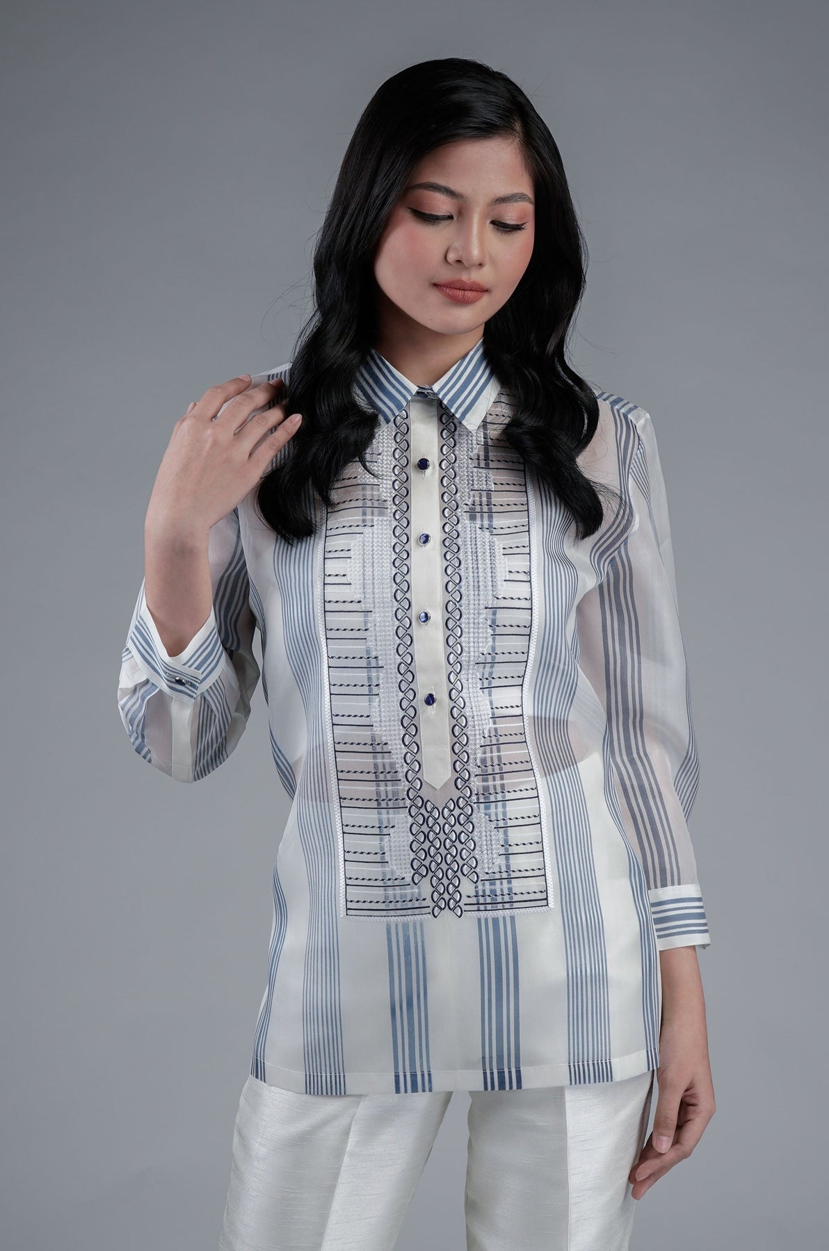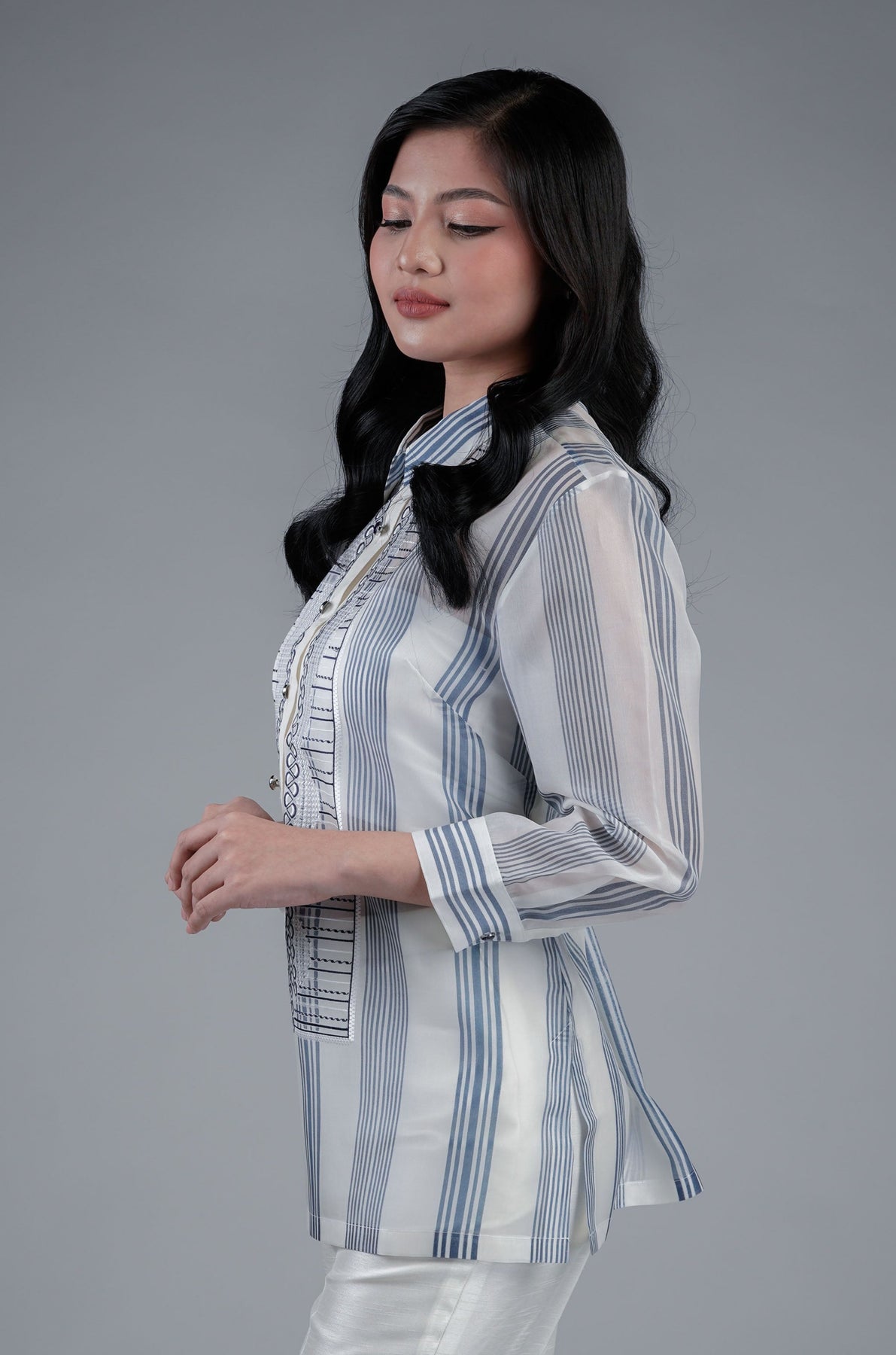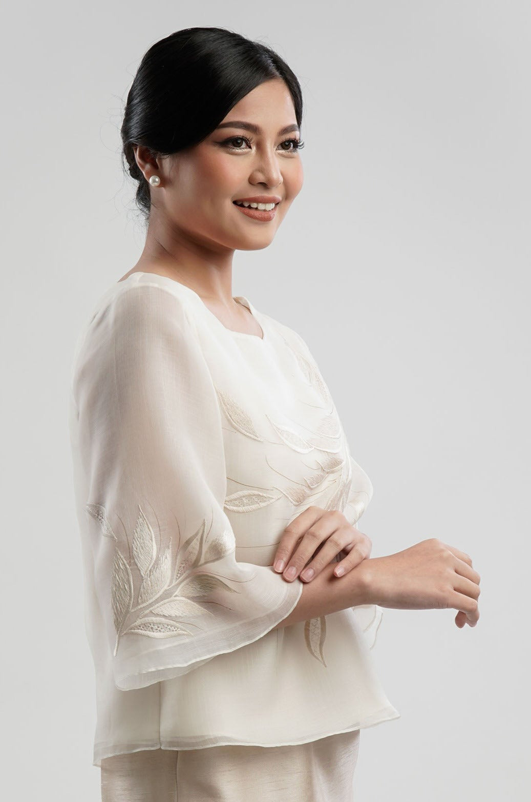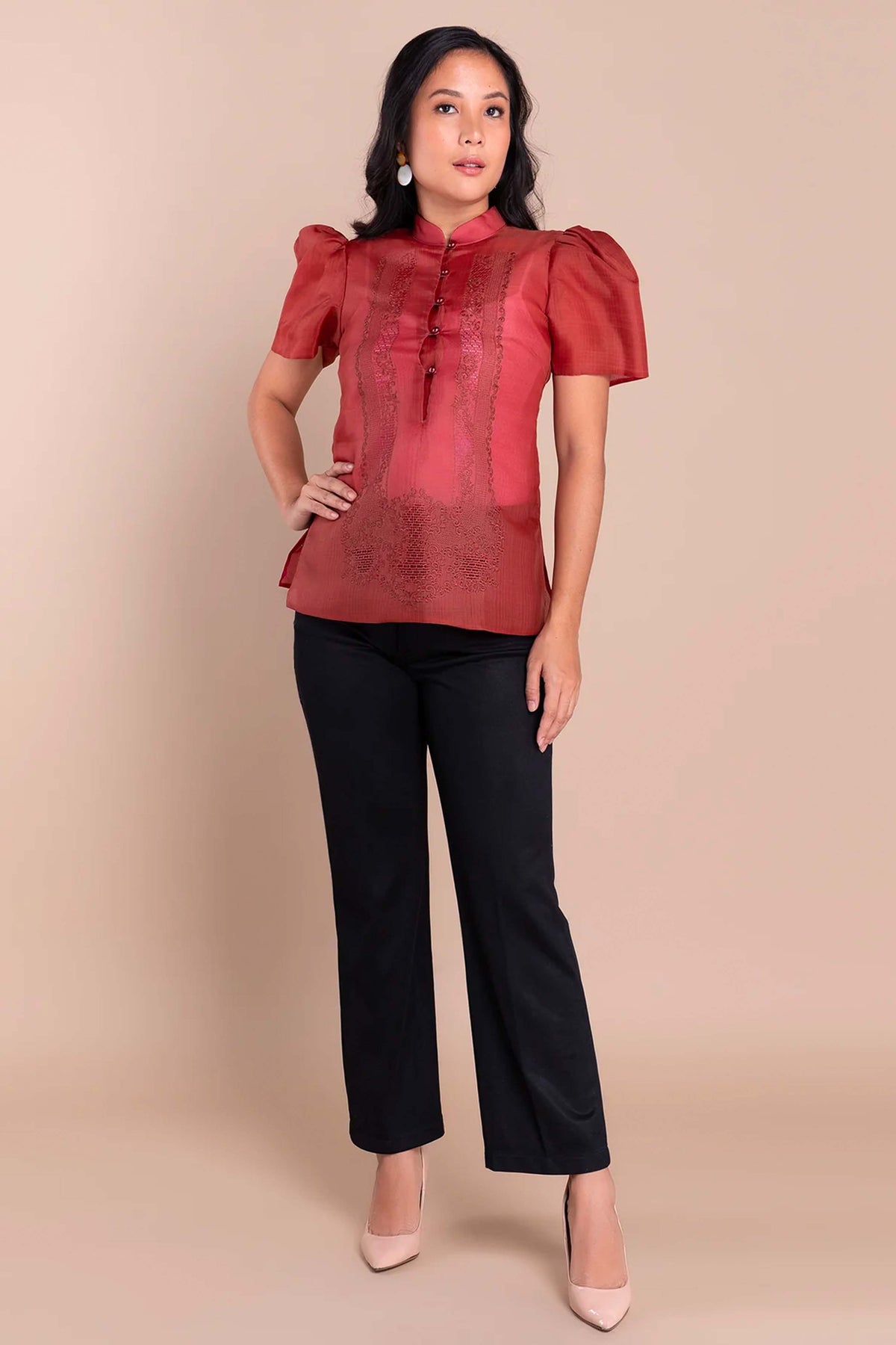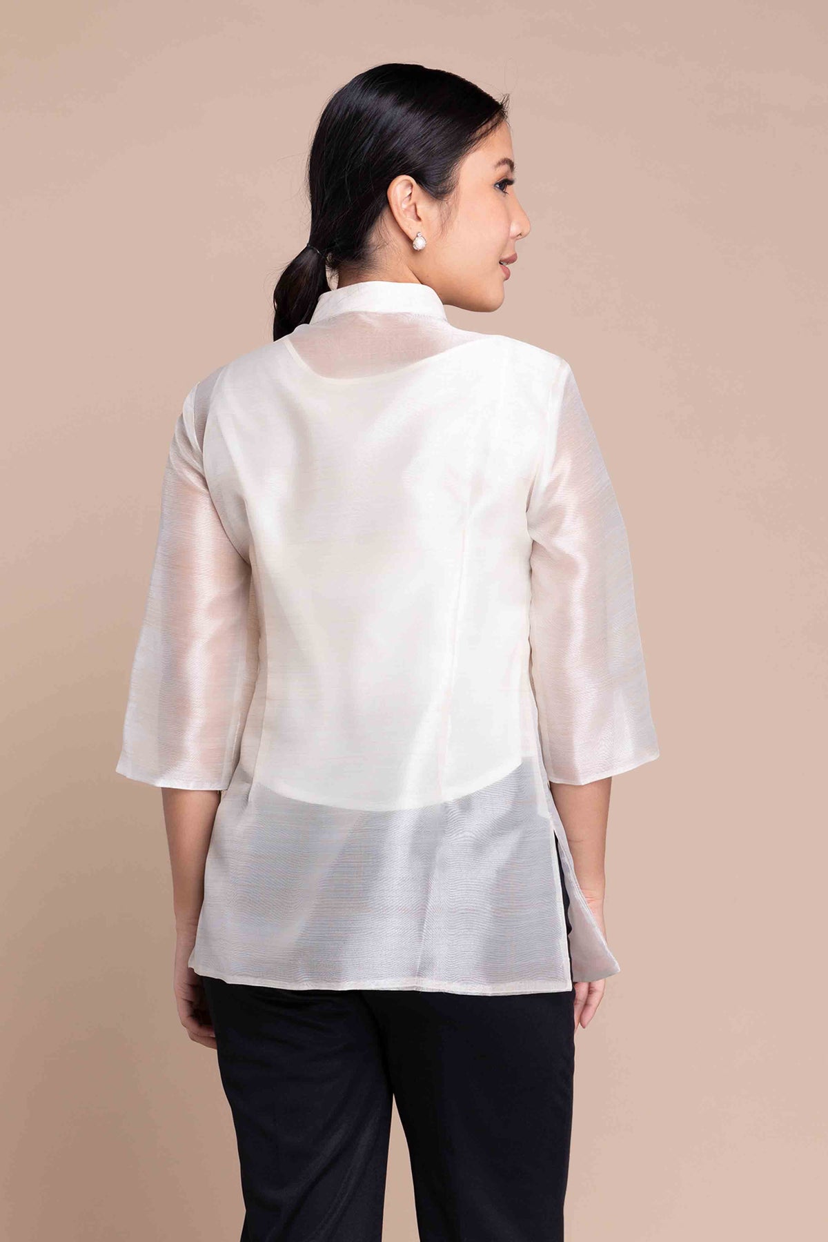 I wore the ivory colored shanthng dress during my wedding day! It was form fitting and had a nice hug at the waist area. Dress is not heavy, and I had comfort wearing it the whole day. Gown was long, as I stand 5'1", I wore a 3in heels and the hem falls slightly touching the floor.