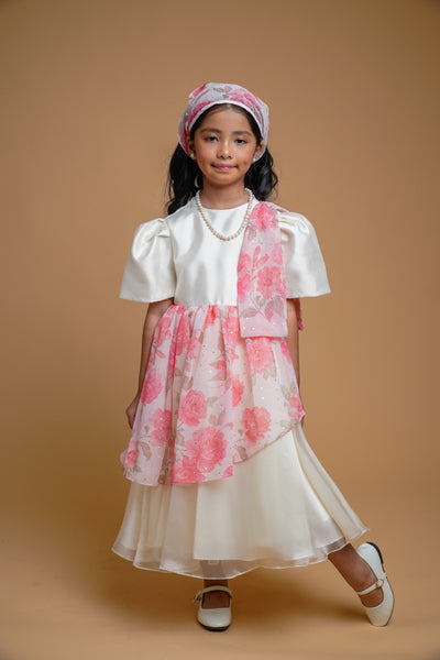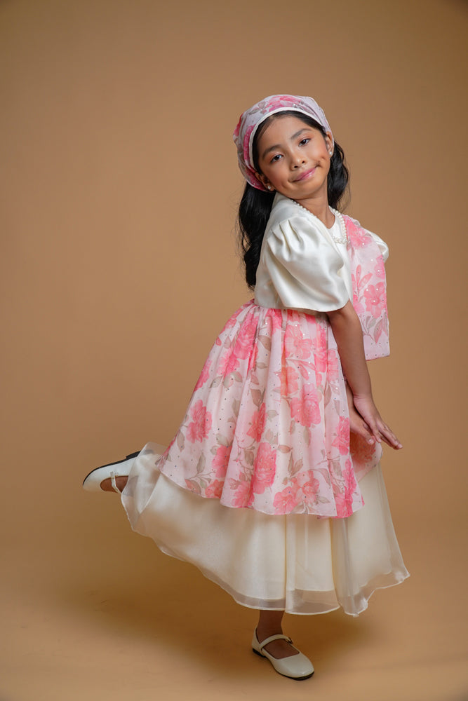 Girls Terno Dress with Tapis, Alampay and Bandana Pink