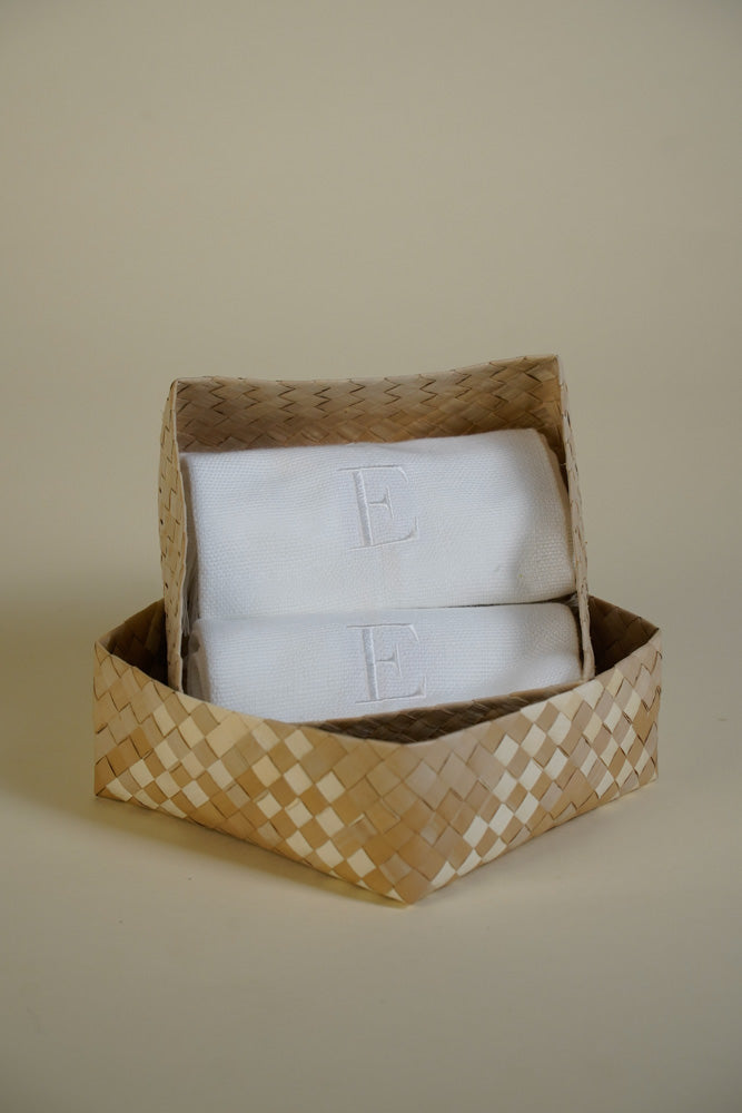 White Napkin Monogrammed Set of 2 with Banig Box "14x20"